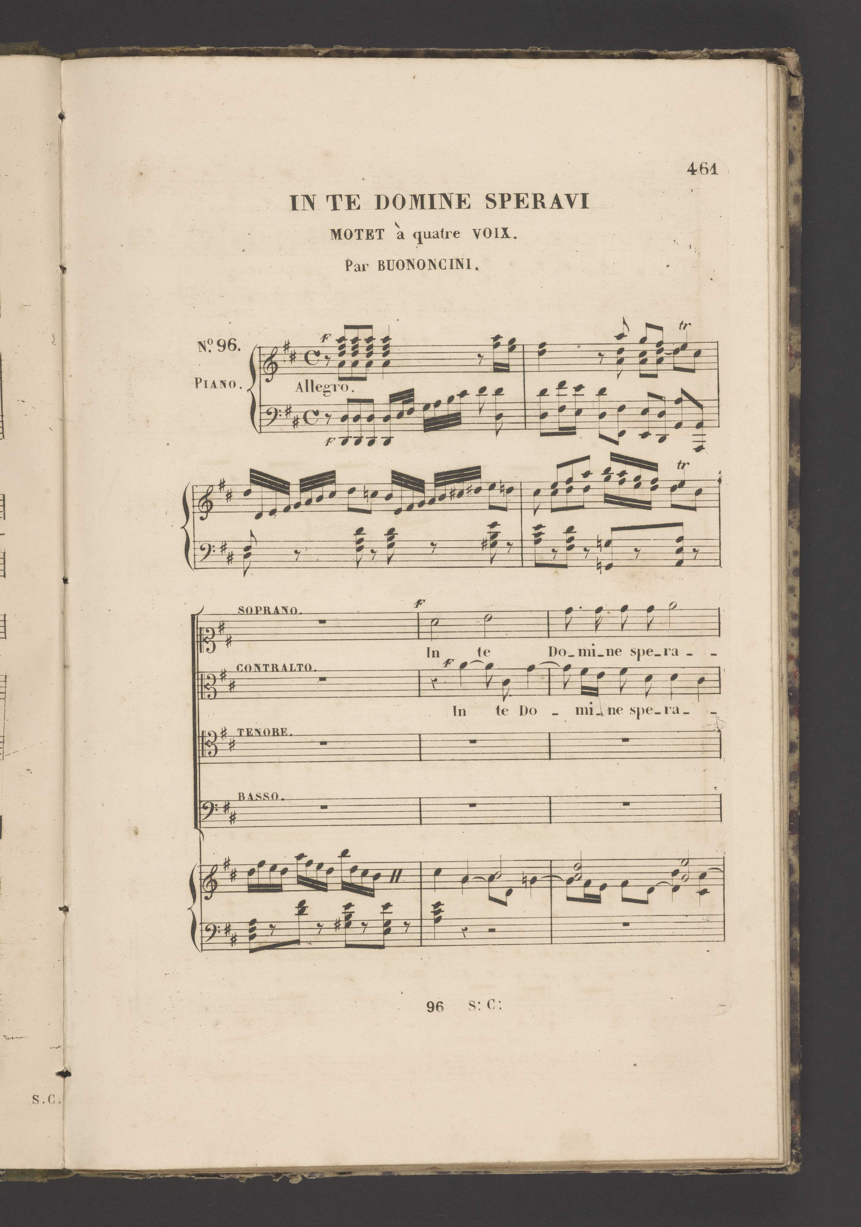 [cover title:] RECUEIL | DES | MORCEAUX DE MUSIQUE ANCIENNE, | Executés aux Concerts | de la Société de Musique | VOCALE RELIGIEUSE et CLASSIQUE, | FONDÉE A PARIS EN 1843. | SOUS LE PATRONAGE DE MESDAMES: | [list of patrons] | Et sous la Direction | de M|r LE PRINCE DE LA MOSKOWA. | Publié par la Société. | imp. Bertants [space] R. S|t Marc. 14 | Paris, chez Pacini Editeur des Œ|vres de la Société. | Boulevart des Italiens, N|o 11