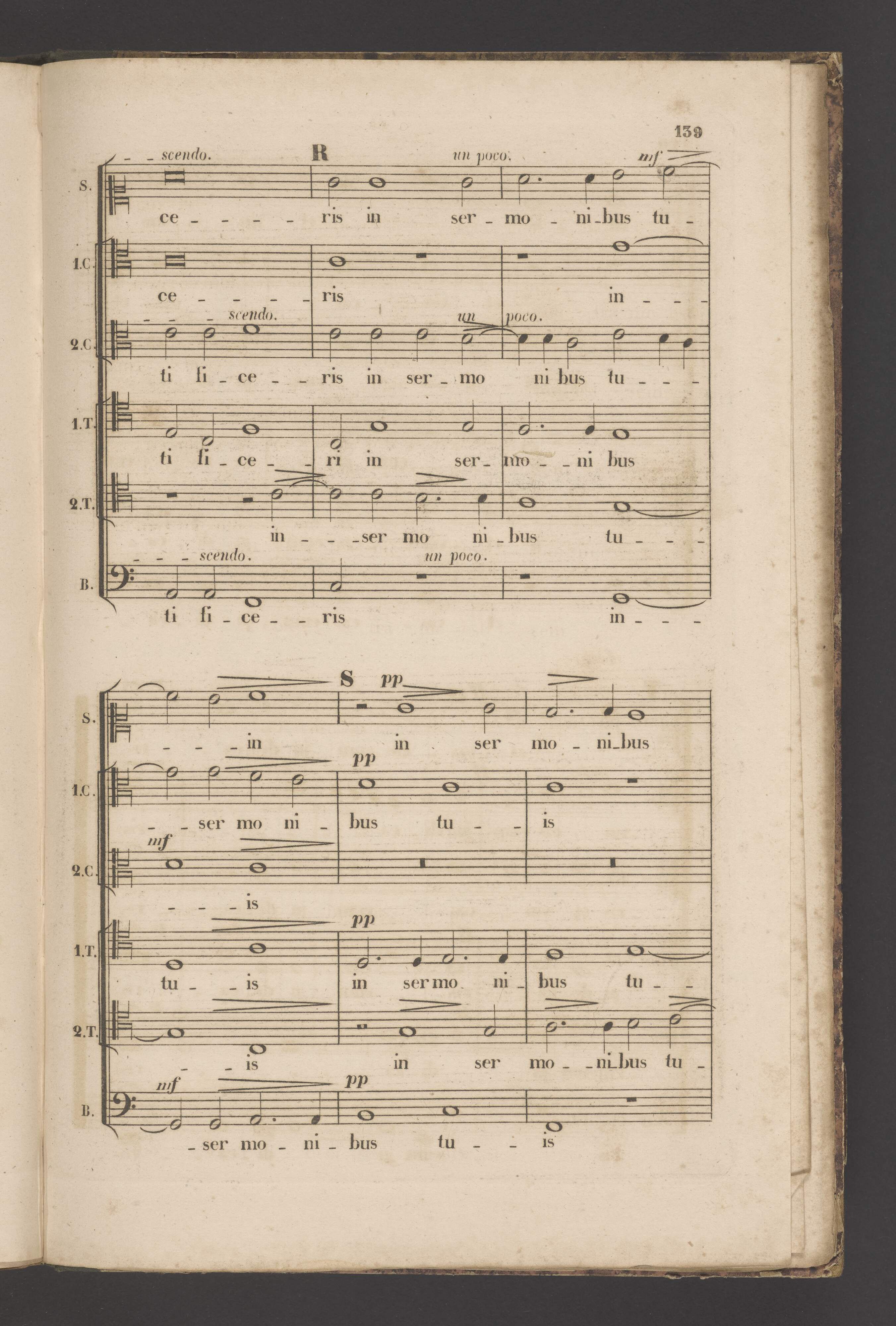 [cover title:] RECUEIL | DES | MORCEAUX DE MUSIQUE ANCIENNE, | Executés aux Concerts | de la Société de Musique | VOCALE RELIGIEUSE et CLASSIQUE, | FONDÉE A PARIS EN 1843. | SOUS LE PATRONAGE DE MESDAMES: | [list of patrons] | Et sous la Direction | de M|r LE PRINCE DE LA MOSKOWA. | Publié par la Société