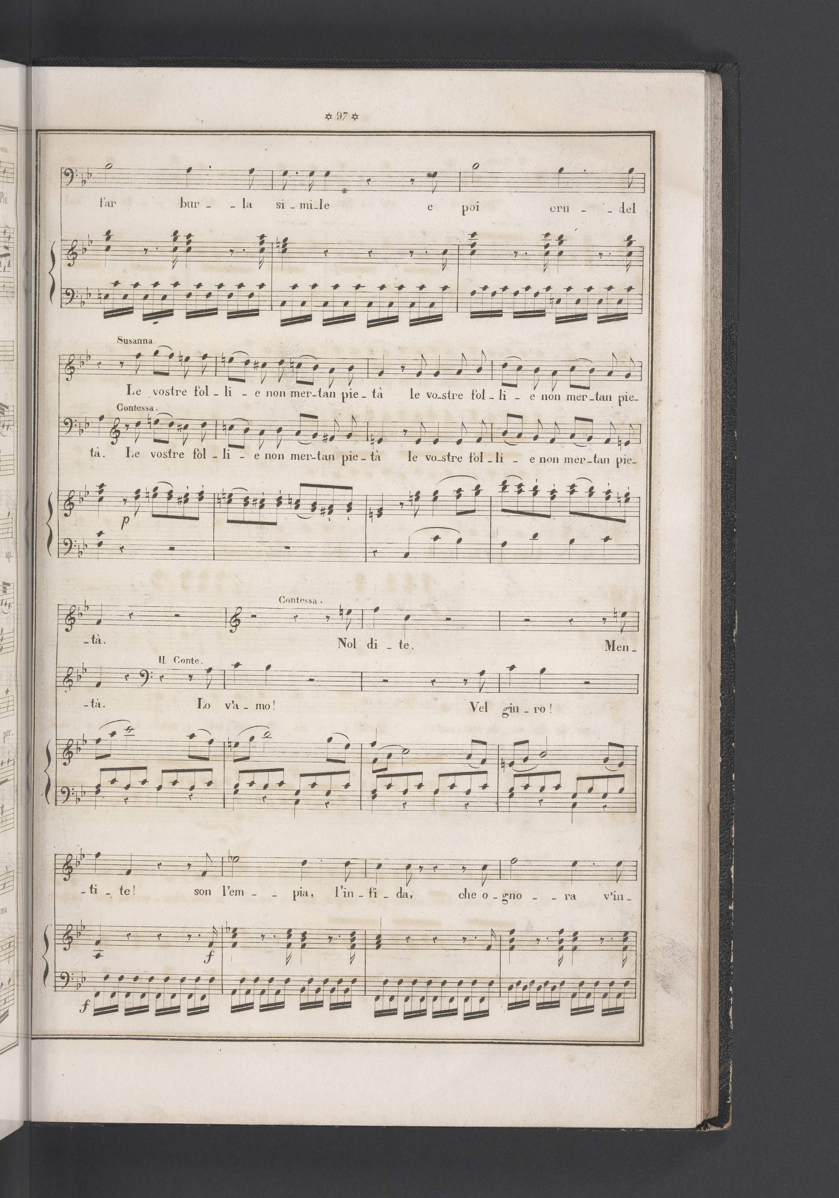 [title page:] MOZART | Le Nozze di Figaro | Dramma Giocoso | Posto in musica e ridotto | PER IL | Piano Forte DA | W. A. MOZART | Le 23. Décembre 1839 | Edition Graveé el Imprimée en taille douce par Marquerie Fréres | Corrige par A. Marquerie et C. Leburtier. | PARIS, chez MARQUERIE FRÉRES, Rue S|t|e Anne 17