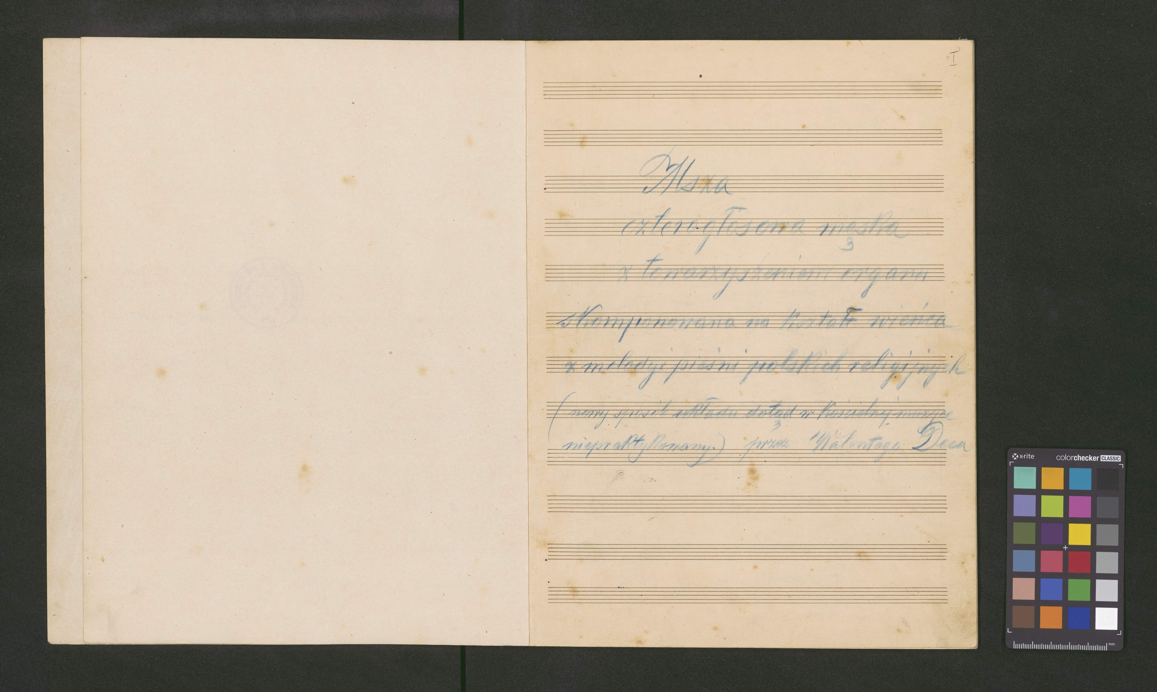 [title page, score no. 1, in red pencil] Msza na część Św. Stanisława | Biskupa i męczennika | ułożona przez W. Deca