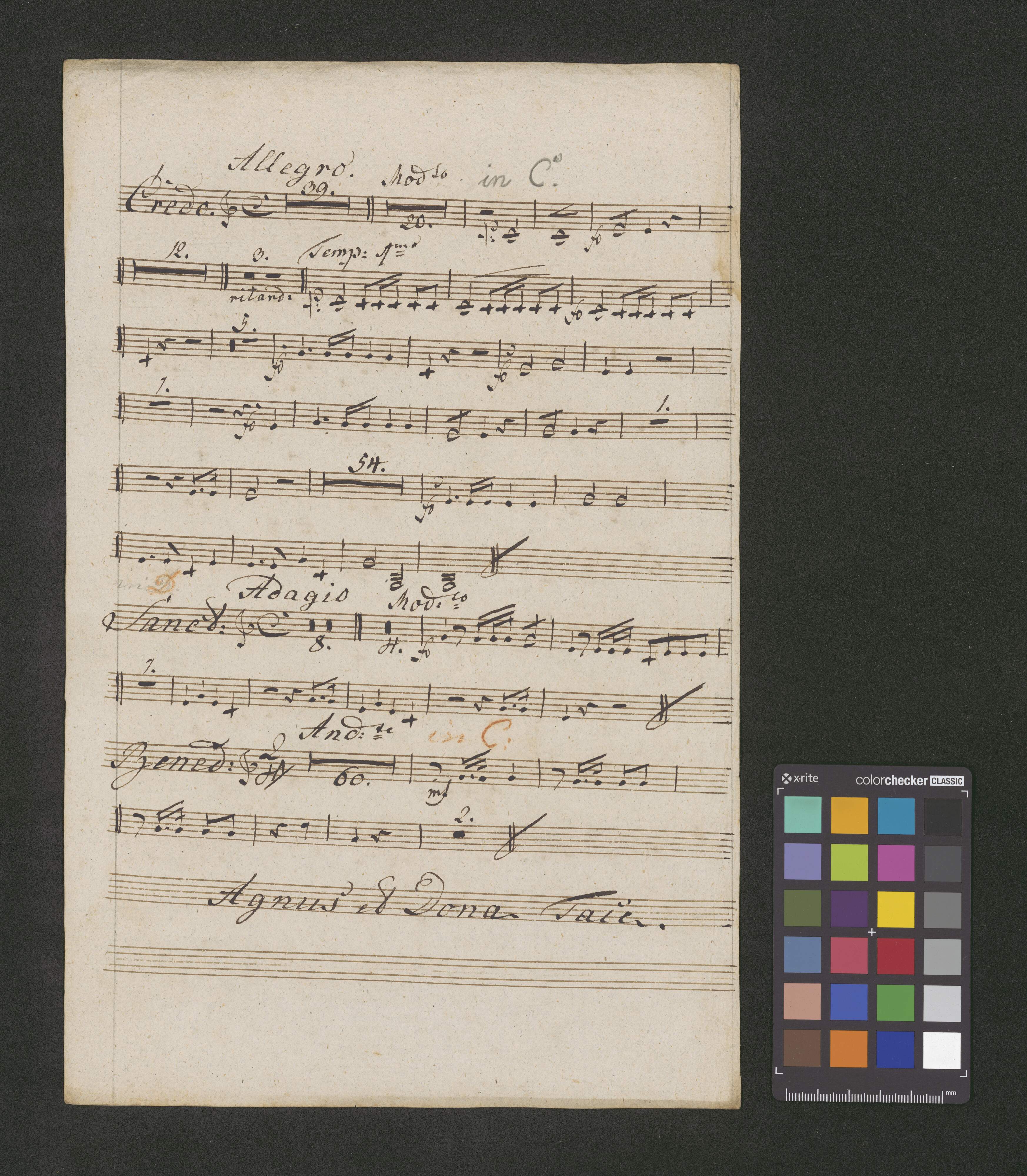 [title page:] N|o I. | Meſse in D. | fuer | Sopran, Alt, Tenor und Baſs. | II. Violinen | Viola | Floete | II. Oboen | II. Horn | II Trompeten | Pauken | und | Orgel | Del Signore H: [sic!] Hahn. | [by other hand:] arkuszy 12