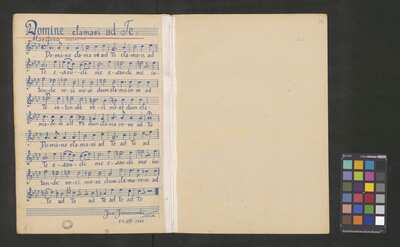 [pl-text: Zawiera opracowanie Domine clamavi ad Te.], [pl-text: Foliacja dopisana ołówkiem.], [pl-text: Partesy i partytura zapisane na f. 1-46 są wcześniejsze, spisane inną ręką.], [pl-text: Partytura i partesy zapisane na f. 1-38 posiadają odrębne okładki z k. tyt.], [pl-text: W pierwszej partyturze (f. 1-18) drobne poprawki ołówkiem.], [pl-text: f. 39 r, nad nutami, niebieską kredką zapis ręką Janczewskiego: "Missa Incognita", zamazany ołówkiem. W prawym górnym rogu zapis ołówkiem: "rospisać".], [pl-text: W drugiej partyturze (f. 39-46) poprawki i dopiski różnymi kolorami, ręką Janczewskiego.], [pl-text: f. 46v, pod nutami, ołówkiem zapisane obliczenia liczby taktów całej kompozycji.], [pl-text: Na kartach tytułowych oraz f. 1r, 19r, 23r, 27r, 33r, 39r pieczęć okrągła z herbem Trzy korony, w otoku treść: „SIGILLUM CAPITULI CATHEDRALIS CRACOVIENSIS”.], [pl-text: Na II stronach okładek oraz f. 47r, 53r, 59r, 65r, 72r, 78r, 91r, 92r, 98r, 105r okrągła pieczęć: "ARCHIWUM i BIBLIOTEKA | Krakowskiej Kapituły Katedralnej".], [pl-text: Na f. 2r, 22v, 26v, 32v, 38r, 39r, 46v, 51v, 70v, 71v, 76v, 83v, 85v, 98v, 104v owalna pieczęć: „CATH. CRAC. * ARCH. CAPIT.”], [pl-text: Na f. 48v, 59v, 60v, 62v, 64r, 65v, 66v, \67, 75r, 79v, 81r, 82v, 101r, 104v, 105v wklejki z brakującym lub poprawionym tekstem muzycznym.], [pl-text: Na f. 51v, 58v, 64v, 71v, 76v, 83v, 91r, 98r, 104r, 110v pod nutami podpisy Janczewskiego z dziennymi datami spisania partesu (zakres 18.VIII.[19]60 - 24.VIII.1961). Na f. 58r, 99r obok nut daty bez podpisu, kolejno: 6.VIII.[19]60 i 8.VIII.[19]60.], [pl-text: f. 105r, nad nutami, ołówkiem: "Haslinger".], [pl-text: Partesy zawarte w f. 78-84, 85-91 (T1), 59-64 (T2), 65-71 (B1), 92-98 (B2) zaczynają się od cz. Gloria.]