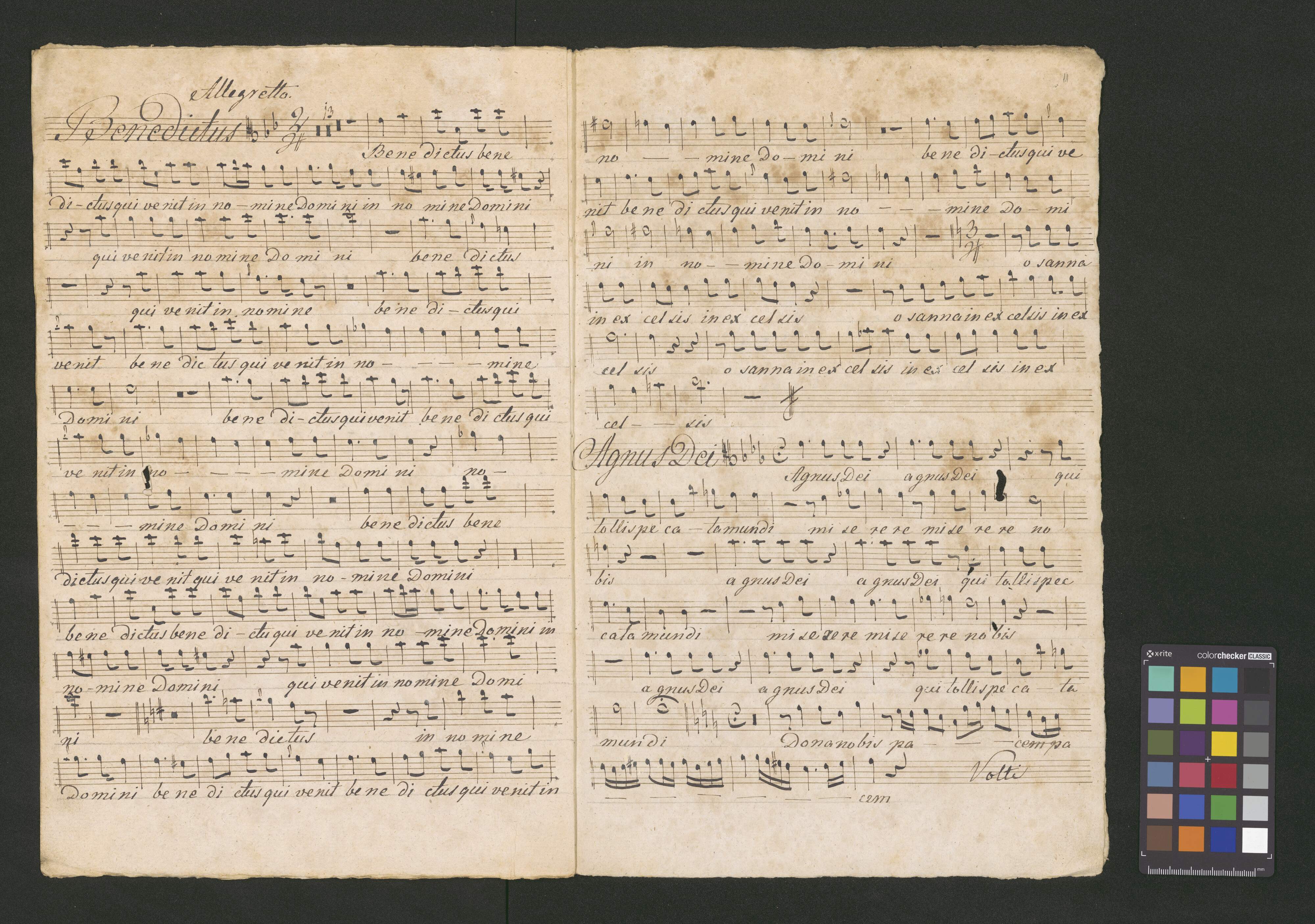 Messa 7|m|a |a 4 voix | avec acompagnement a 2 violons | Viola, Basse, 2 Hautbois, Basson | 2 Trompettes, Timbales et Orgue | composeee | par | Joseph Haydn. zwana Msza [illegible] | No. VII |scripta D. Maji 1826