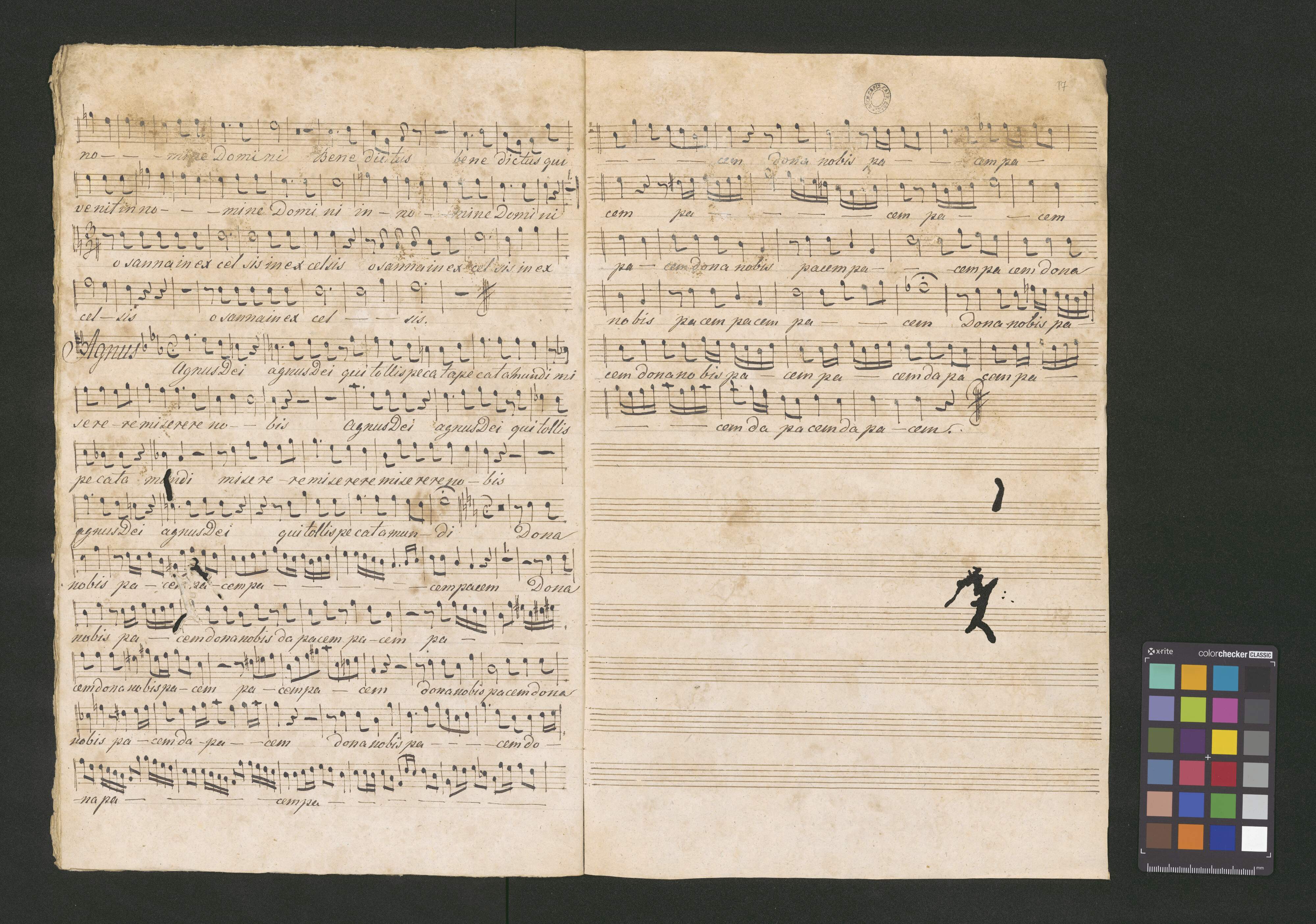 Messa 7|m|a |a 4 voix | avec acompagnement a 2 violons | Viola, Basse, 2 Hautbois, Basson | 2 Trompettes, Timbales et Orgue | composeee | par | Joseph Haydn. zwana Msza [illegible] | No. VII |scripta D. Maji 1826