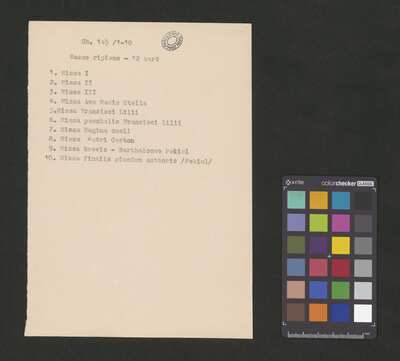 [pl-text: Pieczęć: "CATH. CRAC. * ARCH. CAPIT." na stronach recto rękopisu.], [pl-text: Na pierwszej i ostatniej stronie rękopisu wpisana ołówkiem sygnatura.], [pl-text: Foliacja w źródle naniesiona ołówkiem.], [pl-text: Na ostatniej stronie rękopisu inskrypcja "O ad M.D.G.".], [pl-text: Rękopis jest odpisem mszy z rękopisu Kk.I.2 , RISM ID no.: 300258016.]