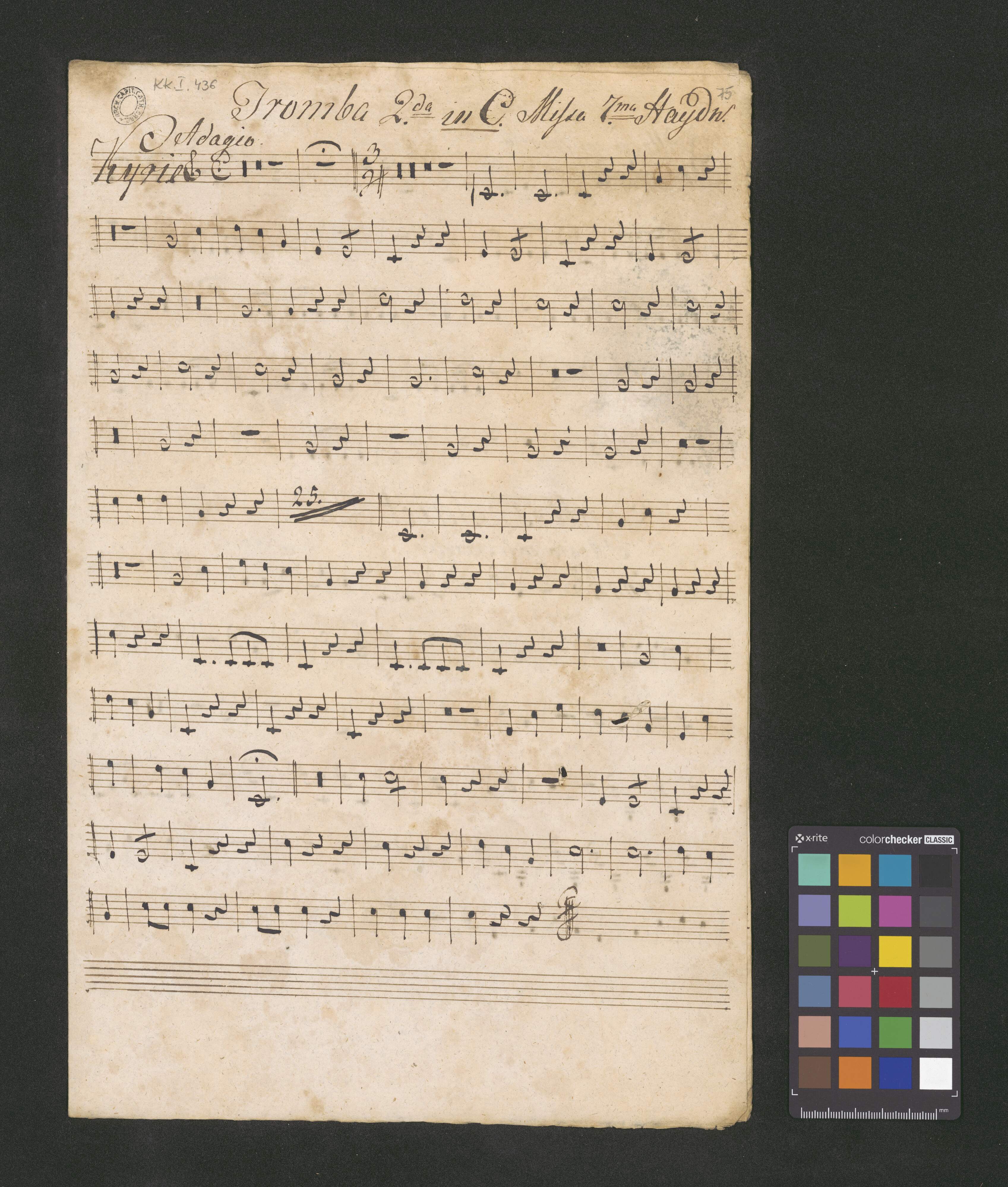 Messa 7|m|a |a 4 voix | avec acompagnement a 2 violons | Viola, Basse, 2 Hautbois, Basson | 2 Trompettes, Timbales et Orgue | composeee | par | Joseph Haydn. zwana Msza [illegible] | No. VII |scripta D. Maji 1826