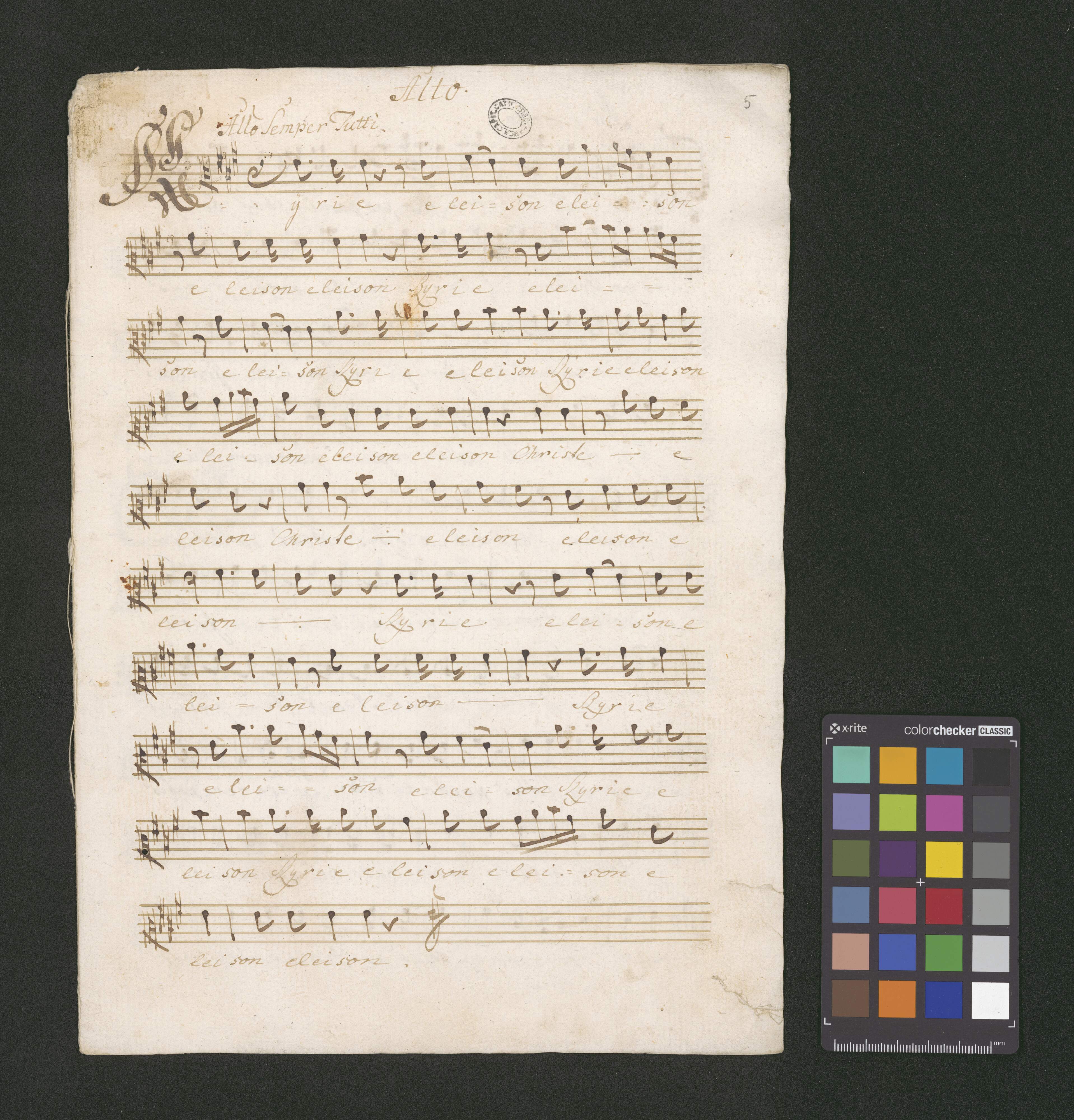 Missa in A | à 4 Voci in tutti | violino primo | violino secondo | con organo et violone | Del signg. Leop. Hoffmann | Anno 1796 diebus guibus. Lochman ... Musicae Pref