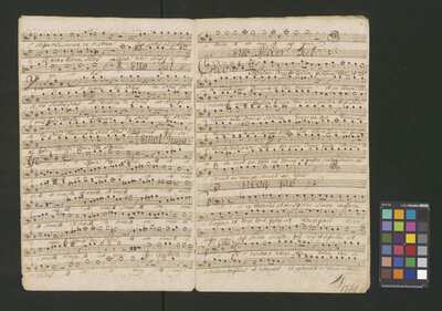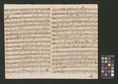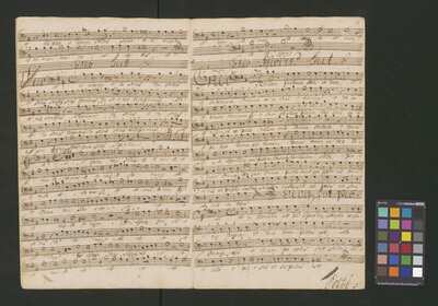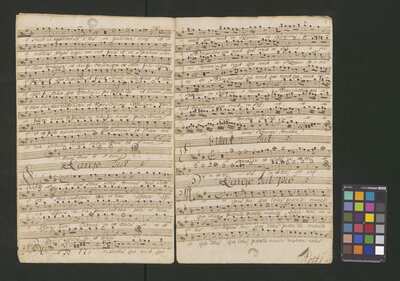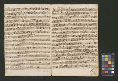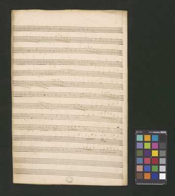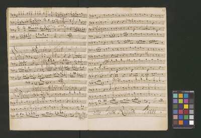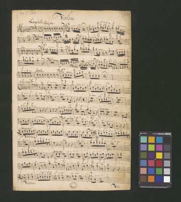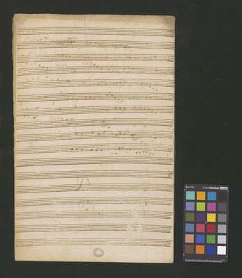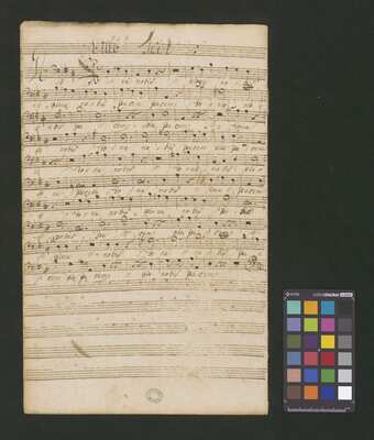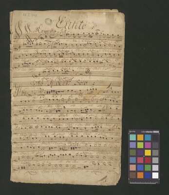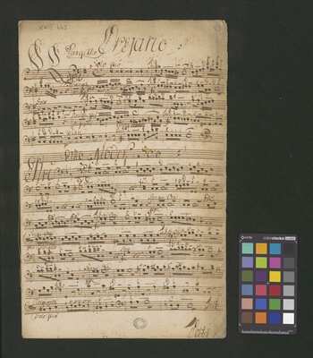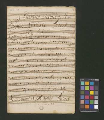 [pl text: Istnieją kopie partii Violino Primo i Violino Secondo wykonane przez innego kopistę], [pl text: każdy wyciąg głosowy i instrumentalny ma numerację stron wykonaną ołówkiem, w górnym prawym narożniku tylko każdej folio recto], [pl text: na środku dolnej części przedniej okładki jest napisane pomarańczowym ołówkiem: "No 8"], [pl text: Pieczęć: „ARCHIWUM I BIBLIOTEKA”, „Krakowskiej Kapituły Katedralnej” Kk.I.443 na pierwsza strona partii Canto]