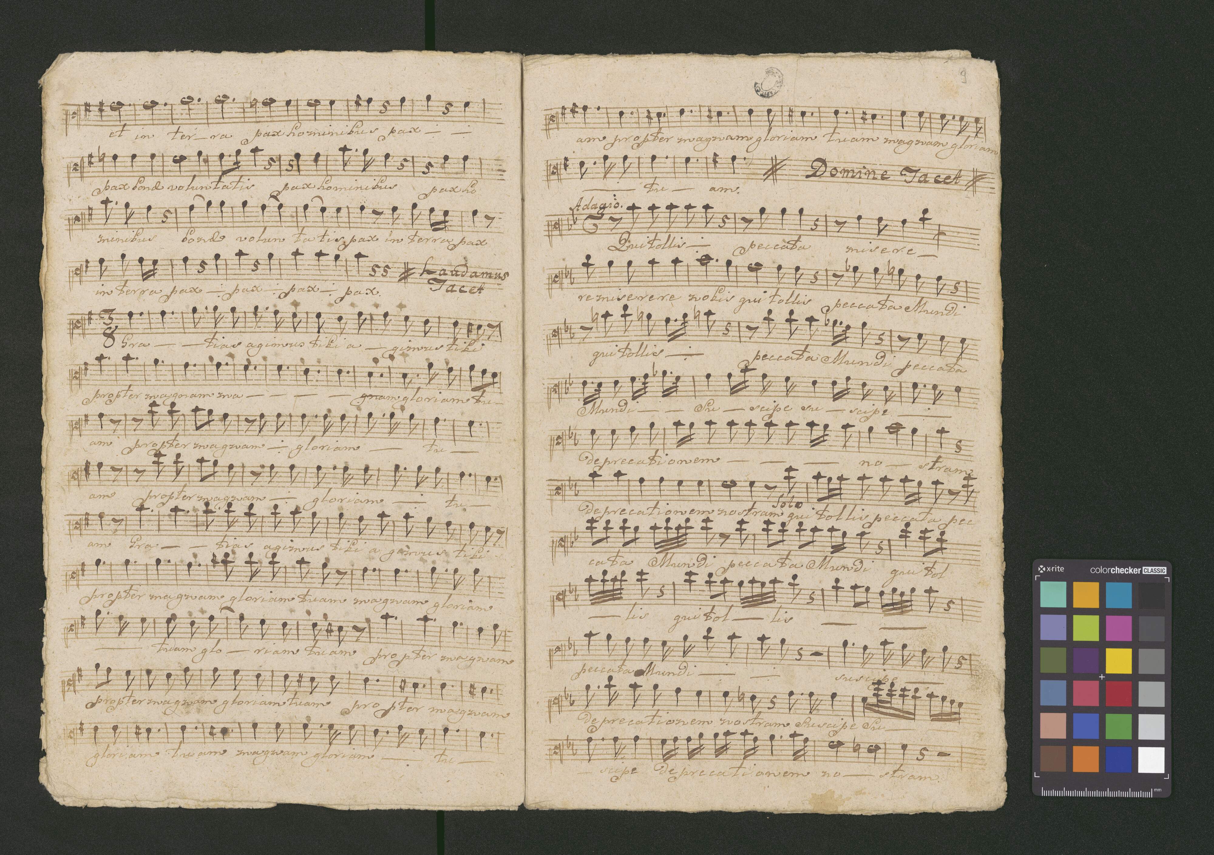 Missa in E |m|o|l|l| del Siniore Loos | Vocibus 9.[sic] Canto, Alto, Tenore, Basso | Violino primo, Violino 2undo | Cornu primo, Cornu Secondo in G | et Organo
