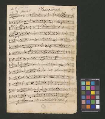 [pl text: każdy wyciąg głosowy i instrumentalny ma numerację stron wykonaną ołówkiem, w górnym lewym i prawym narożniku każdej folio], [pl text: Pieczęć: „ARCHIWUM I BIBLIOTEKA”, „Krakowskiej Kapituły Katedralnej” Kk.I.458 na drugiej stronie okładki]