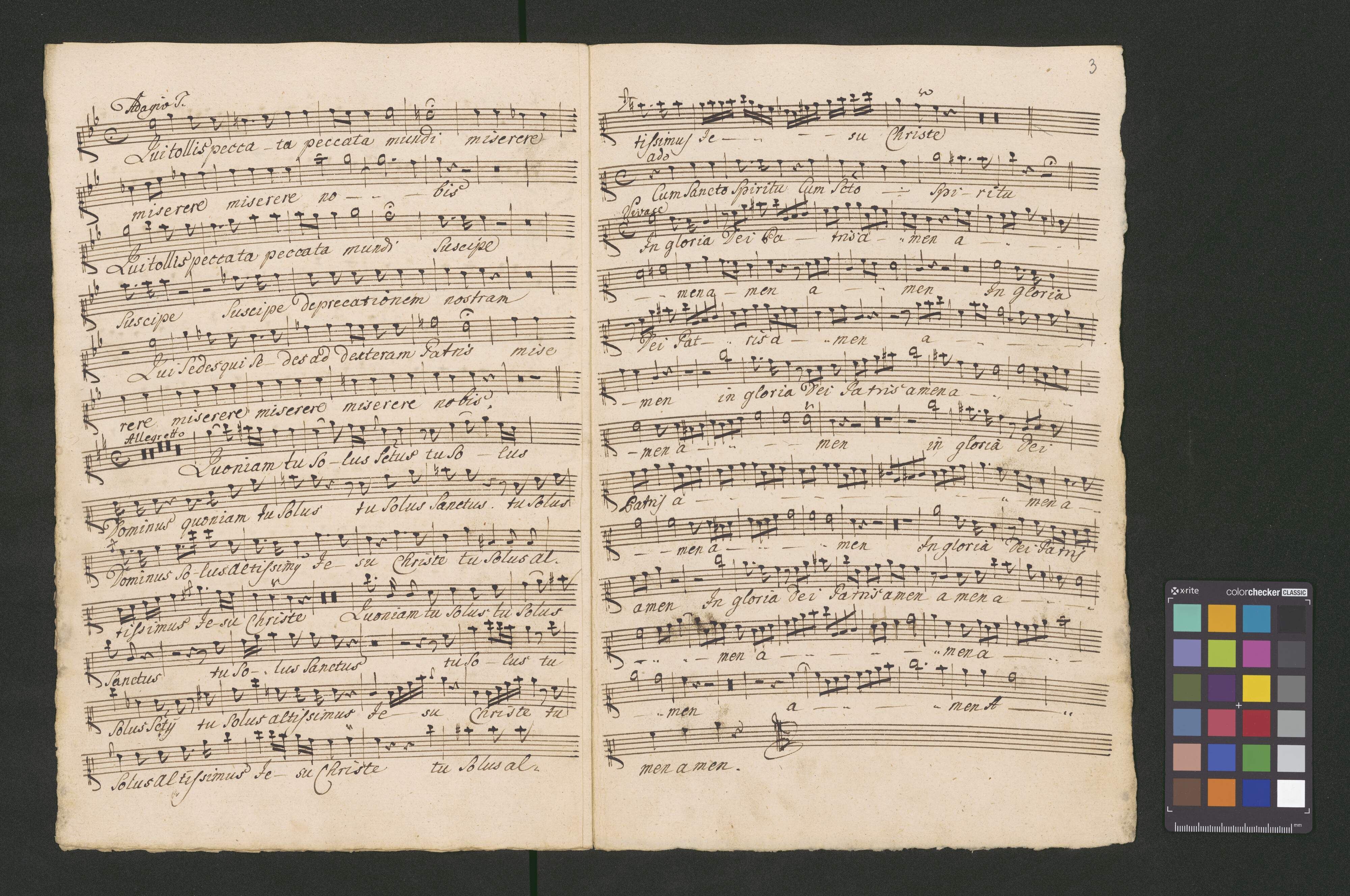 in C | Kyrie et Gloria | a | Canto, Alto, Tenore, Basso. | Violino I.|m|o et II.|d|o I Oboe I.|m|o et II.|d|o | Trombone solo | Clarino I.|m|o et II.|d|o | Tympana | Alto viola, et violone. | con Organo. | Autore Franc. Joan. Navratil