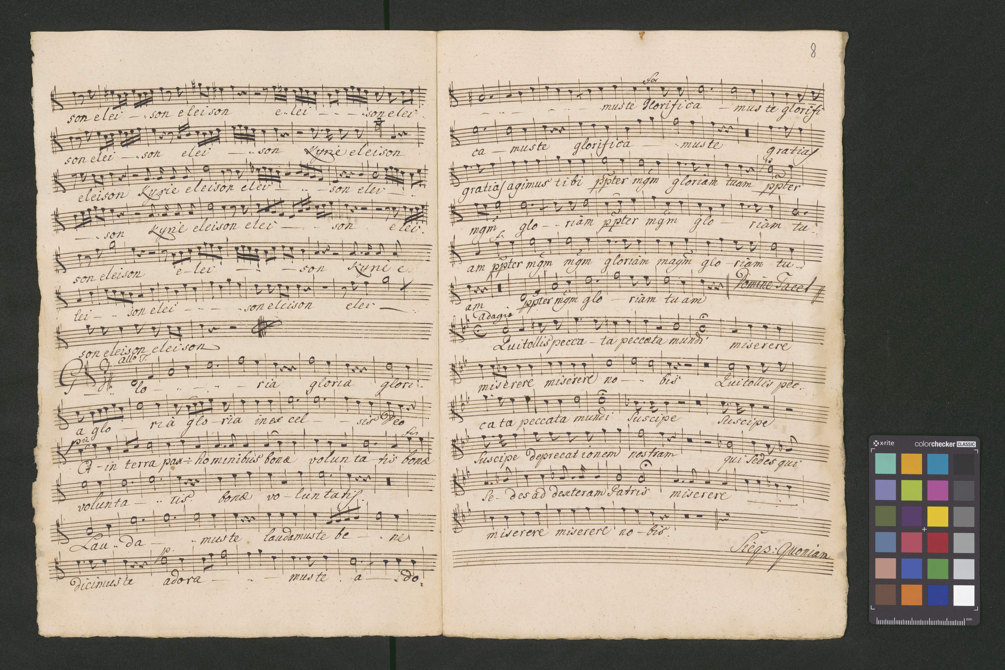 in C | Kyrie et Gloria | a | Canto, Alto, Tenore, Basso. | Violino I.|m|o et II.|d|o I Oboe I.|m|o et II.|d|o | Trombone solo | Clarino I.|m|o et II.|d|o | Tympana | Alto viola, et violone. | con Organo. | Autore Franc. Joan. Navratil