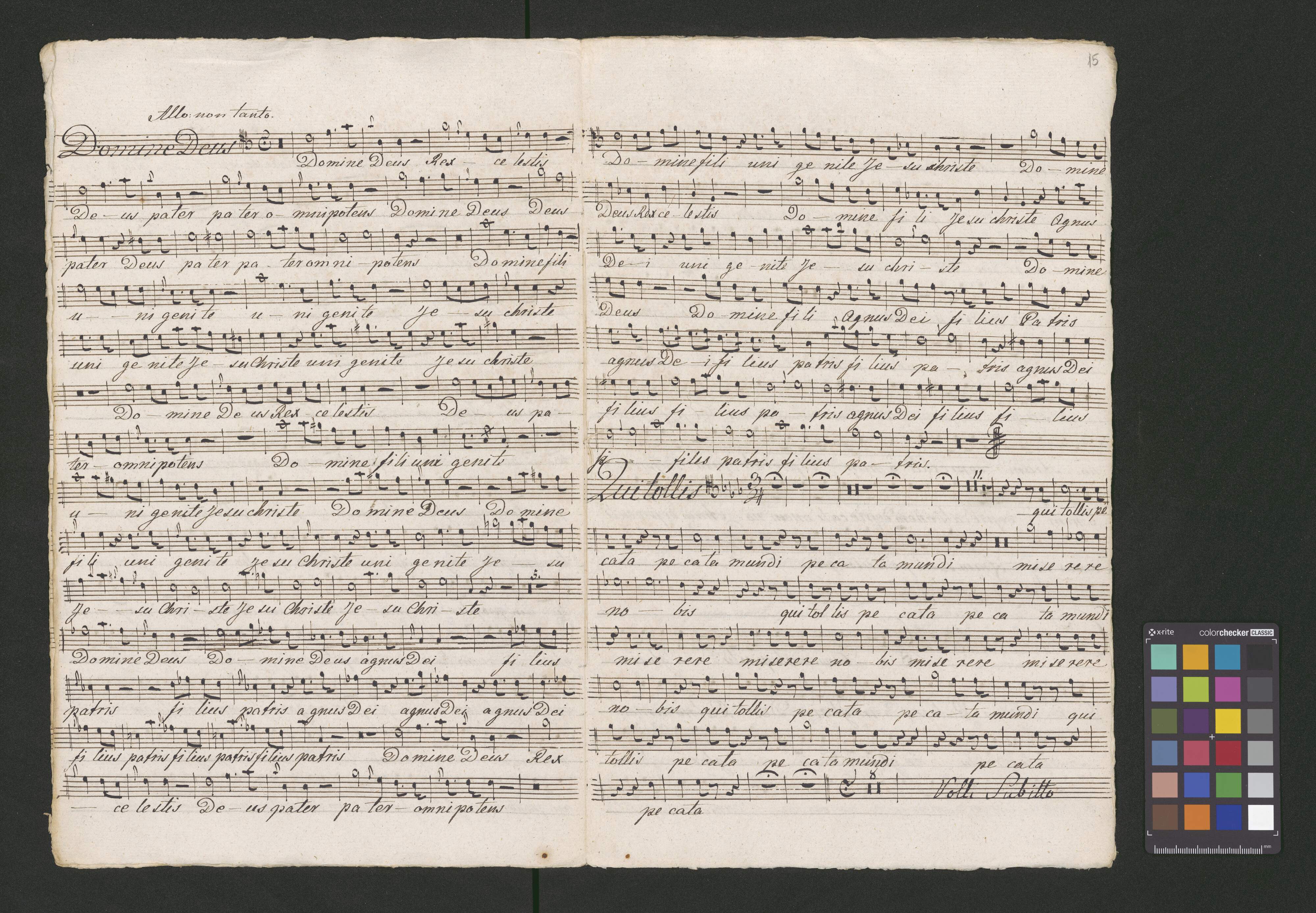 N 24 I Missa | Kyrie et Gloria | Del Segnore Ferdinando Orlandi | Soprano. Alto | Tenore e Basso | Violino I|m|i et secondo I Alto Viola I Oboa Sola | Corni due I Trombe | et Organo. | Pro usu cele[!]ie Cath. Cra