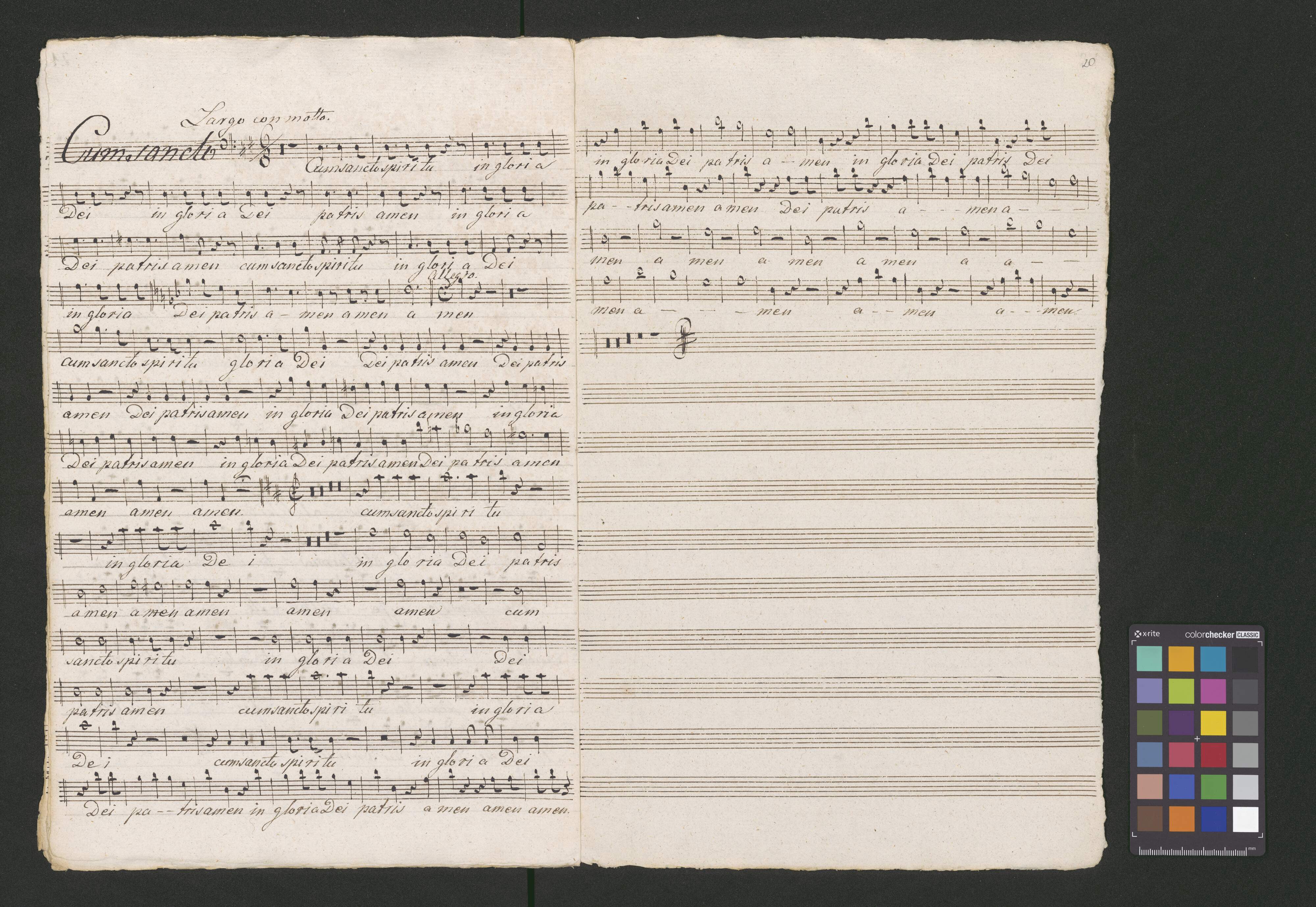 N 24 I Missa | Kyrie et Gloria | Del Segnore Ferdinando Orlandi | Soprano. Alto | Tenore e Basso | Violino I|m|i et secondo I Alto Viola I Oboa Sola | Corni due I Trombe | et Organo. | Pro usu cele[!]ie Cath. Cra