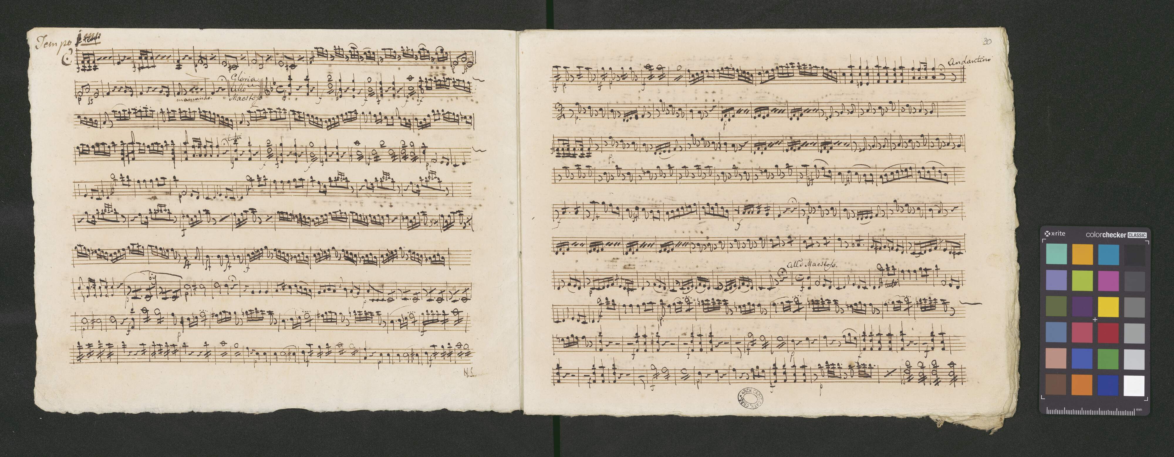 N 24 I Missa | Kyrie et Gloria | Del Segnore Ferdinando Orlandi | Soprano. Alto | Tenore e Basso | Violino I|m|i et secondo I Alto Viola I Oboa Sola | Corni due I Trombe | et Organo. | Pro usu cele[!]ie Cath. Cra