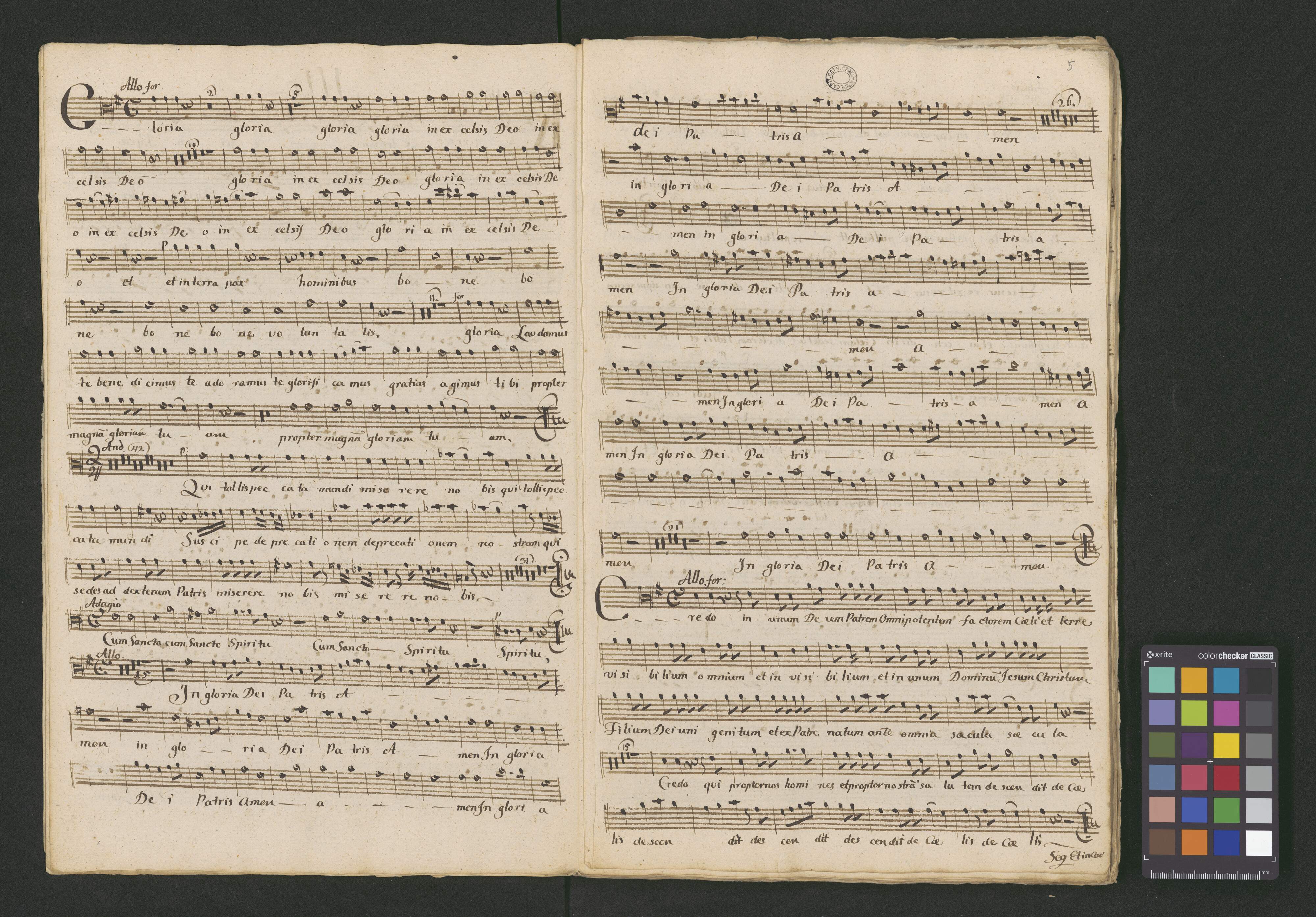 N: 611 | Missa | Solemnis ex G. a Vocibus, | Canto. Alto. | Tenore. Basso. | Violino 1mo. et 2do, obligato, | Flauto 1mo. et 2do Obligato. | cornu 1mo, et 2do, Obligato, | et| Organo | Auth: Venz Raszek