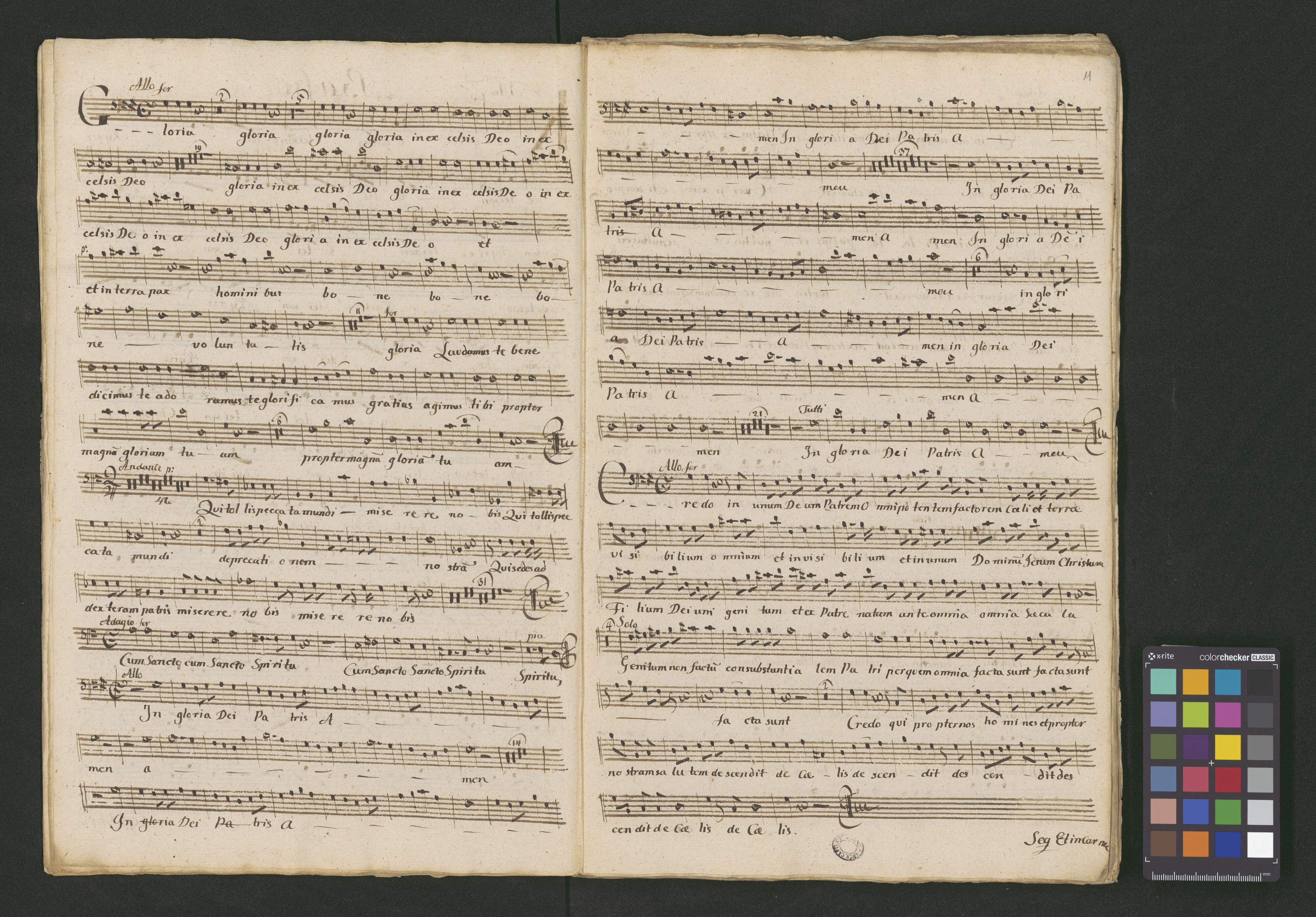 N: 611 | Missa | Solemnis ex G. a Vocibus, | Canto. Alto. | Tenore. Basso. | Violino 1mo. et 2do, obligato, | Flauto 1mo. et 2do Obligato. | cornu 1mo, et 2do, Obligato, | et| Organo | Auth: Venz Raszek