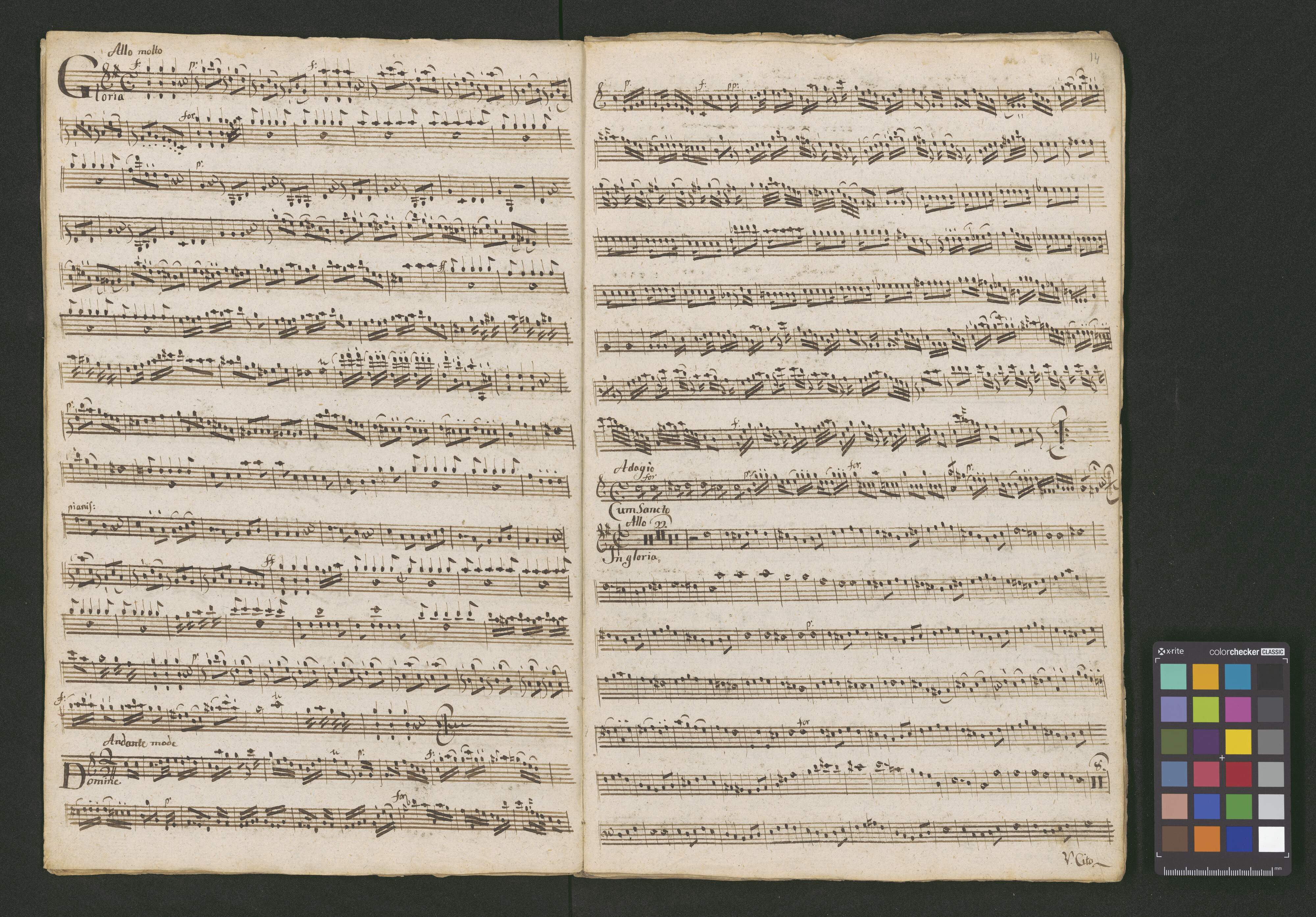 N: 611 | Missa | Solemnis ex G. a Vocibus, | Canto. Alto. | Tenore. Basso. | Violino 1mo. et 2do, obligato, | Flauto 1mo. et 2do Obligato. | cornu 1mo, et 2do, Obligato, | et| Organo | Auth: Venz Raszek