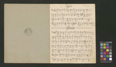 [pl-text: Pieczęć okrągła: „ARCHIWUM I BIBLIOTEKA”, „Krakowskiej Kapituły Katedralnej” na drugiej stronie okładki każdej partii.], [pl-text: Pieczęć "CATH. CRAC. * ARCH. CAPIT." na dole ostatnich stron wszystkich partii.], [pl-text: W prawym górnym roku pierwszej strony głosów, ołówkiem: "W [?] Abeyer [?].], [pl-text: Foliacja w źródle naniesiona ołówkiem.]