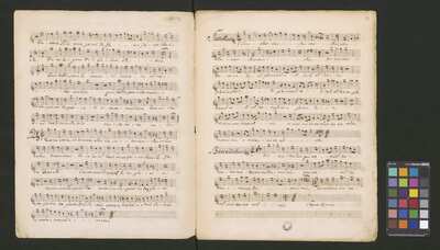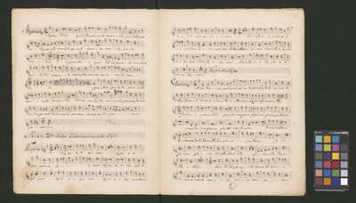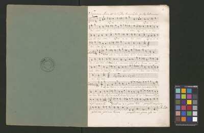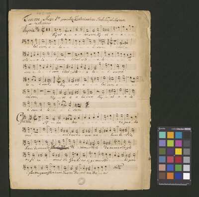 [pl-text: Pieczęć "CATH. CRAC. * ARCH. CAPIT." na dole ostatniej strony partytury i partii Basso oraz na stronach recto drugich egzemplarzy partii S, A, T.], [pl-text: Sygnatura Kk.I.482 ołówkiem na początku drugich egzemplarzy partii S, A, T.], [pl-text: Foliacja w źródle naniesiona ołówkiem.], [pl-text: Arkusze papieru w partyturze ponumerowane w lewym górnym rogu.], [pl-text: Różnice w ilości stron w dubletach.], [pl-text: Do rękopisu dołączona rewizja tekstu muzycznego na sześciu stronach.]
