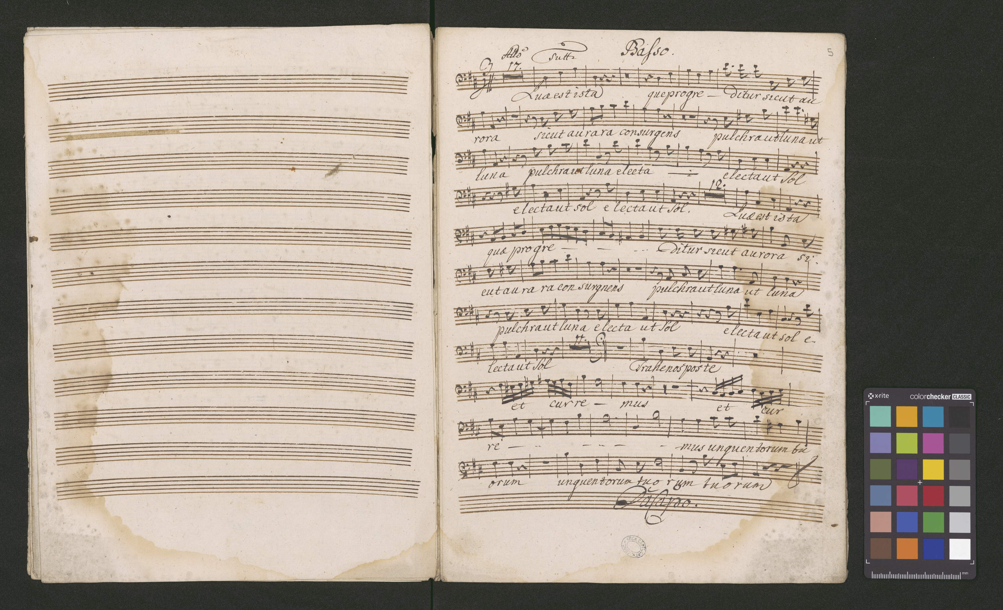 N: 14 | Mottetto in D. | De Beata Virgina Maria | Textu | Qua est ista, qua progredidur sicut aurora | a | 4.|or| Vocibus | 2. Violonis | cum | ORGANO. | Authore Domino Francisco Brixi | Navratil