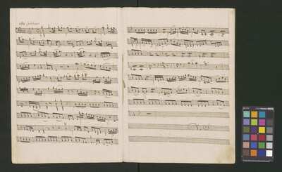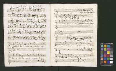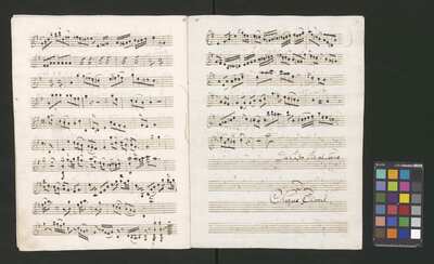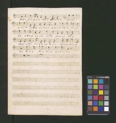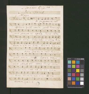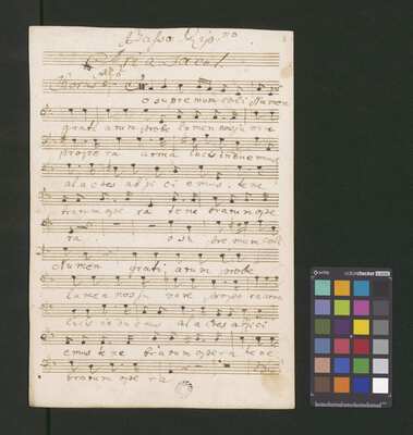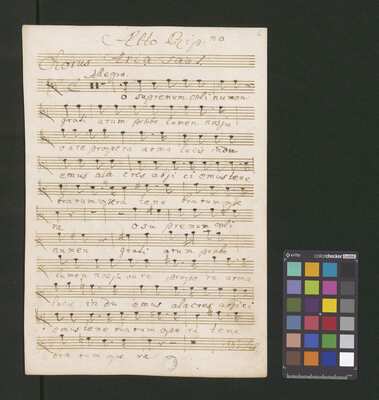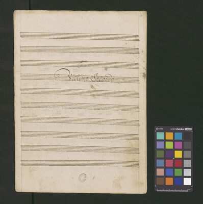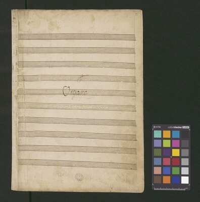 [pl-text: Pieczęć: „ARCHIWUM I BIBLIOTEKA”, „Krakowskiej Kapituły Katedralnej” na odwrocie karty tytułowej. Pieczęć: „CATH. CRAC. * ARCH. CAPIT.” pojawia się 30 razy, w dolnym lub górnym brzegu kart.], [pl-text: Foliacja w źródle naniesiona ołówkiem.], [pl-text: Karta tytułowa podklejona drukowanymi szablonami biurowymi. Z takich samych arkuszy zrobiona reszta okładki.], [pl-text: Na karcie tytułowej ponad tytułem nieczytelny napis sporządzony czerwonym ołówkiem.], [pl-text: Całość źródła sporządzona przez trzech kopistów. Dodatkowe partie vl 1, 2 oraz org spisane inną ręką; głos S solo również sporządzony inną ręką niż pozostałe partie.], [pl-text: Recytatyw w głosie S solo zapisany wraz z akompaniamentem.], [pl-text: Partia vlne podpisana "Violone. | Alto Viola". Recytatyw w partii vlne rozpisany z melodią głosu i podpisanym tekstem.], [pl-text: W jednej z partii org recytatyw rozpisany z melodią i podpisanym tekstem.]