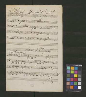 [pl-text: Pieczęć: „ARCHIWUM I BIBLIOTEKA”, „Krakowskiej Kapituły Katedralnej” na odwrocie karty tytułowej. Pieczęć: „CATH. CRAC. * ARCH. CAPIT.” pojawia się 16 w dolnym brzegu stron.], [pl-text: Foliacja w źródle naniesiona ołówkiem.], [pl-text: Na karcie tytułowej: nad zapisem tytułu duże litery "No 23", pod zapisem tytułu "Violino Solo". Obie adnotacje sporządzone czerwonym ołówkiem.], [pl-text: W partii T solo uwagi wykonawcze sporządzone czerwonym ołówkiem.]