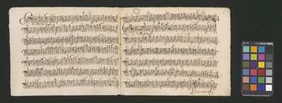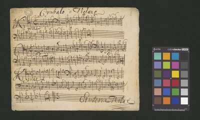 [pl-text: Nazwa głosu nad partią: "Cymbalo ò Violone".], [pl-text: Foliacja ołówkiem w prawym górnym rogu kart.], [pl-text: Na karcie 1r w lewym górnym rogu ołówkiem sygnatura: "Kk.I.23".], [pl-text: Na kartach 1r, 2r, 3r u góry, na kacie 4r u dołu pieczęć: „CATH. CRAC. * ARCH. CAPIT.”], [pl-text: Partia basso continuo z cyfrowaniem. Na początku kolejnych fragmentów mszy podpisane incypity tekstowe.], [pl-text: Brak pozostałych głosów.]