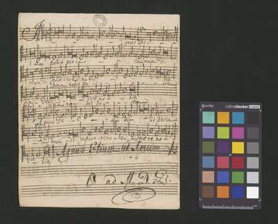 [pl-text: Opracowanie części cyklu mszalnego: "Kyrie", "Gloria", "Sanctus", "Agnus Dei".], [pl-text: Foliacja ołówkiem w prawym górnym rogu kart.], [pl-text: Na karcie 1r u góry z prawej strony ołówkiem sygnatura: "Kk.I.32".], [pl-text: Na stronach 1r, 2r, 3r, 4v, 5r, 6v, 7r, 8v pieczęć: „CATH. CRAC. * ARCH. CAPIT.”], [pl-text: Nazwa głosu na karcie 3r: "Tenore 1mo.", na karcie 5r: "Tenore in Chorali."], [pl-text: W partii B nad początkiem części "Sanctus" na karcie 8r u góry: "Contra Basso". Części "Sanctus" i "Agnus Dei" zapisane w kluczu F-3.], [pl-text: Na końcu każdej partii: "O. ad M. D. Gm."]