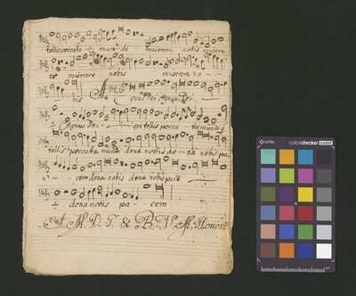 [pl-text: W sygnaturze brak pozostałych głosów.], [pl-text: Foliacja w źródle naniesiona ołówkiem.], [pl-text: W lewym górnym rogu f. 1r zapisana ołówkiem sygnatura.], [pl-text: Na końcu partii adnotacja (zapisana atramentem): "A.M.D.G. & B. V. M. Honore".], [pl-text: Czarna pieczęć: „CATH. CRAC. * ARCH. CAPIT.” na f. 1-4r.]