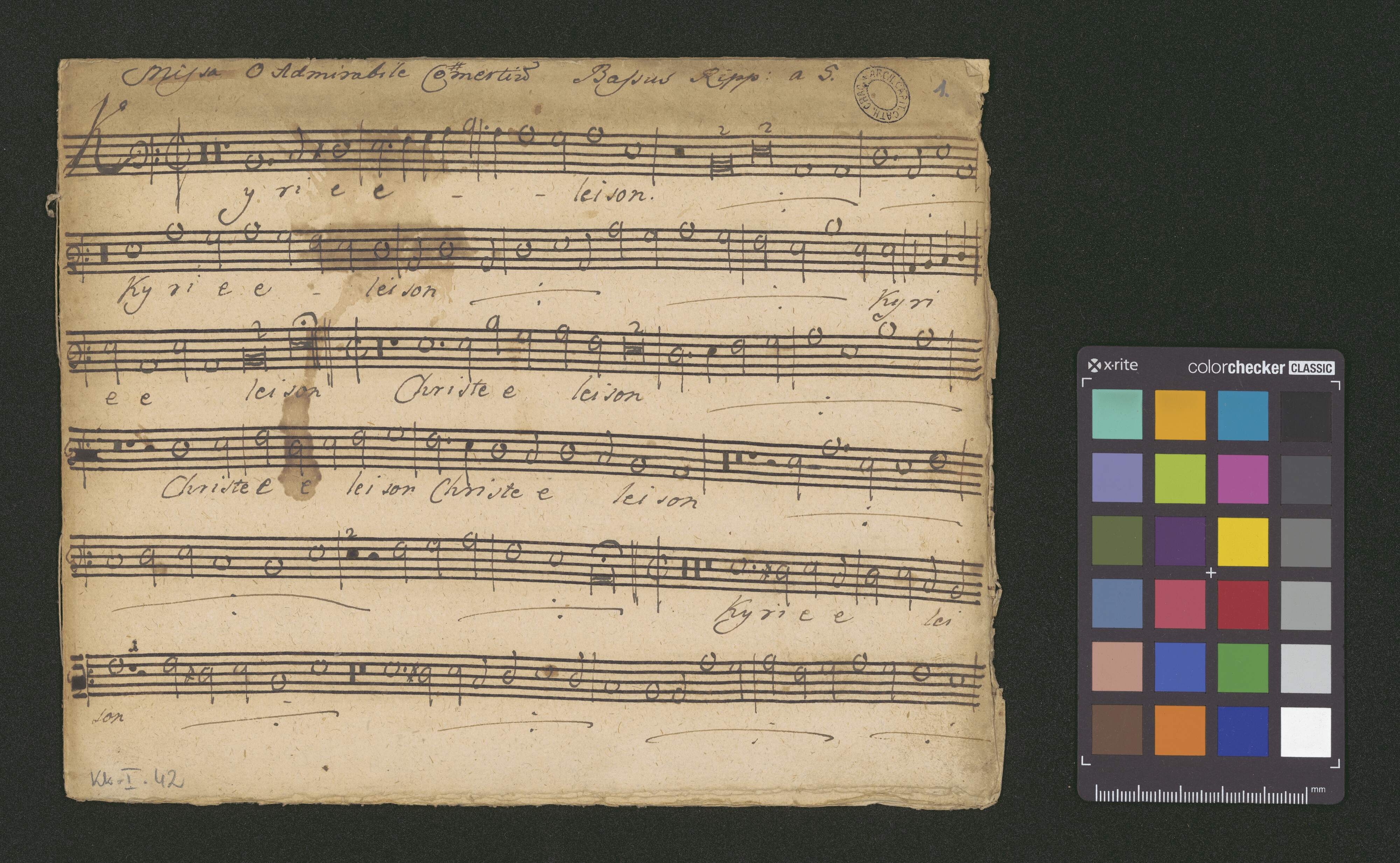 [caption title:] Missa O Admirable Commercium | Bassus Ripp: a 5