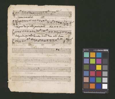 [pl-text: partia sopranu oraz altu zanotowane są jako Soprano primo oraz Alto primo, co sugeruje obecność jeszcze innych partii odpowiadających tym głosom], [pl-text: f. 1r, [5r]: podpis "HR" wskazujący na skryptora Jacka Różyckiego], [pl-text: na niektórych kartach rękopisu owalna pieczęć: „CATH. CRAC. * ARCH. CAPIT.”], [pl-text: na niektórych kartach rękopisu okrągła pieczęć tuszowa, otok: EX ARCHIVO CAPITULI CATHEDRALIS CRACOVIENSIS*, pole: herb kapituły krakowskiej], [pl-text: f. 3r-4v: dodatkowa paginacja, zanotowana ołówkiem: "25-28"; f. [5r]: prawdopodobnie błędna paginacja "215"; f. 5v-6v: paginacja "22-24"; f. 7r-8b: paginacja "17-20"]