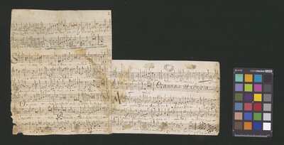[pl-text: Opracowanie cyklu mszalnego bez części "Credo".], [pl-text: Foliacja ołówkiem w prawym górnym rogu kart. Poprzednia paginacja nieuwzględniająca karty 2 skreślona: na karcie 1v w prawym górnym rogu przekreślone "2.", na karcie 3v przekreślone "4."], [pl-text: Karta 1 o wymiarach 19.5 x 16 cm, luźna karta 2 o wymiarach 13.5 x 15.5 cm, karta 3 o wymiarach 11.5 x 17 cm doklejona do karty 1 u dołu.], [pl-text: Karta 2 pierwotnie prawdopodobnie naklejona na kartę 1v, na obu kartach widoczne pozostałości po kleju. Na karcie 1v w miejscu zaklejenia oraz na karcie 2v widoczne do góry nogami fragmenty innych partii wokalnych.], pl-text: Na kartę 3v naklejony fragment innej karty, na nim zapisane dokończenie partii. Dookoła częściowo widoczny zapis wcześniejszego, zaklejonego wpisu.], [pl-text: W lewym dolnym rogu karty 1r ołówkiem sygnatura: "Kk.I.75".], [pl-text: Na kartach 1r, 2v, 3r pieczęć: „CATH. CRAC. * ARCH. CAPIT.”], [pl-text: Odpis głosu basowego, sporządzony prawdopodobnie przez Józefa Pękalskiego. Brak pozostałych głosów.]