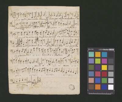[pl-text: Foliacja ołówkiem w prawym górnym rogu kart.], [pl-text: Na karcie 1r u góry po prawej stronie, obok nazwy głosu: "Opus nobile".], [pl-text: Na karcie 1r w lewym dolnym rogu ołówkiem sygnatura: "Kk.I.77".], [pl-text: Na kartach 1r, 2r, 3r, 4r u góry i na karcie 5v u dołu pieczęć: „CATH. CRAC. * ARCH. CAPIT.”], [pl-text: Karta 5 w układzie wertykalnym, wymiary: 20.5 x 16.5 cm.]