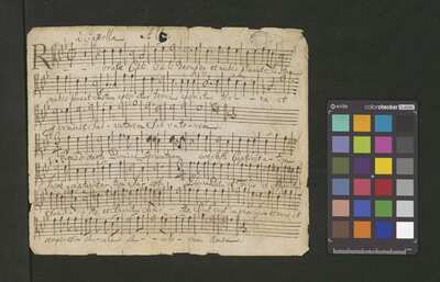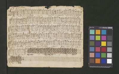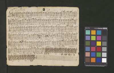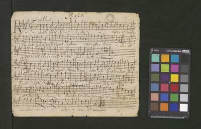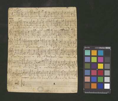 [pl-text: Basso Ripieno wertykalnie], [pl-text: na wszystkich głosach dodana ołówkiem foliacja], [pl-text: Canto – strona verso podpisana ołówkiem jako 2.], [pl-text: 1r., 2r., 3r., 4r., 5v.; owalna pieczęć "ARCH.CAPIT.CATH.CRAC.*"]