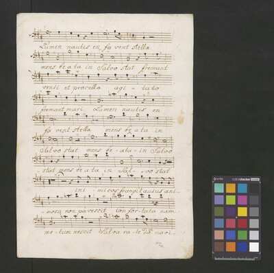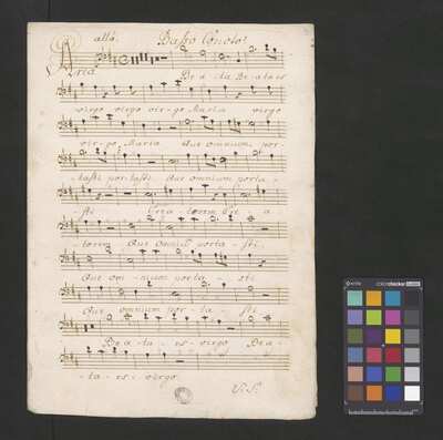[inscription at the end of the org voice:] Motetto de Sancto et de Beata V. Maria | a 4 Voci C.A.T. Basso Concto 2 Violinis Viola Organo | del S|r|e| Paissmann, Fremant venti et procellae B, Coro, orch, org D