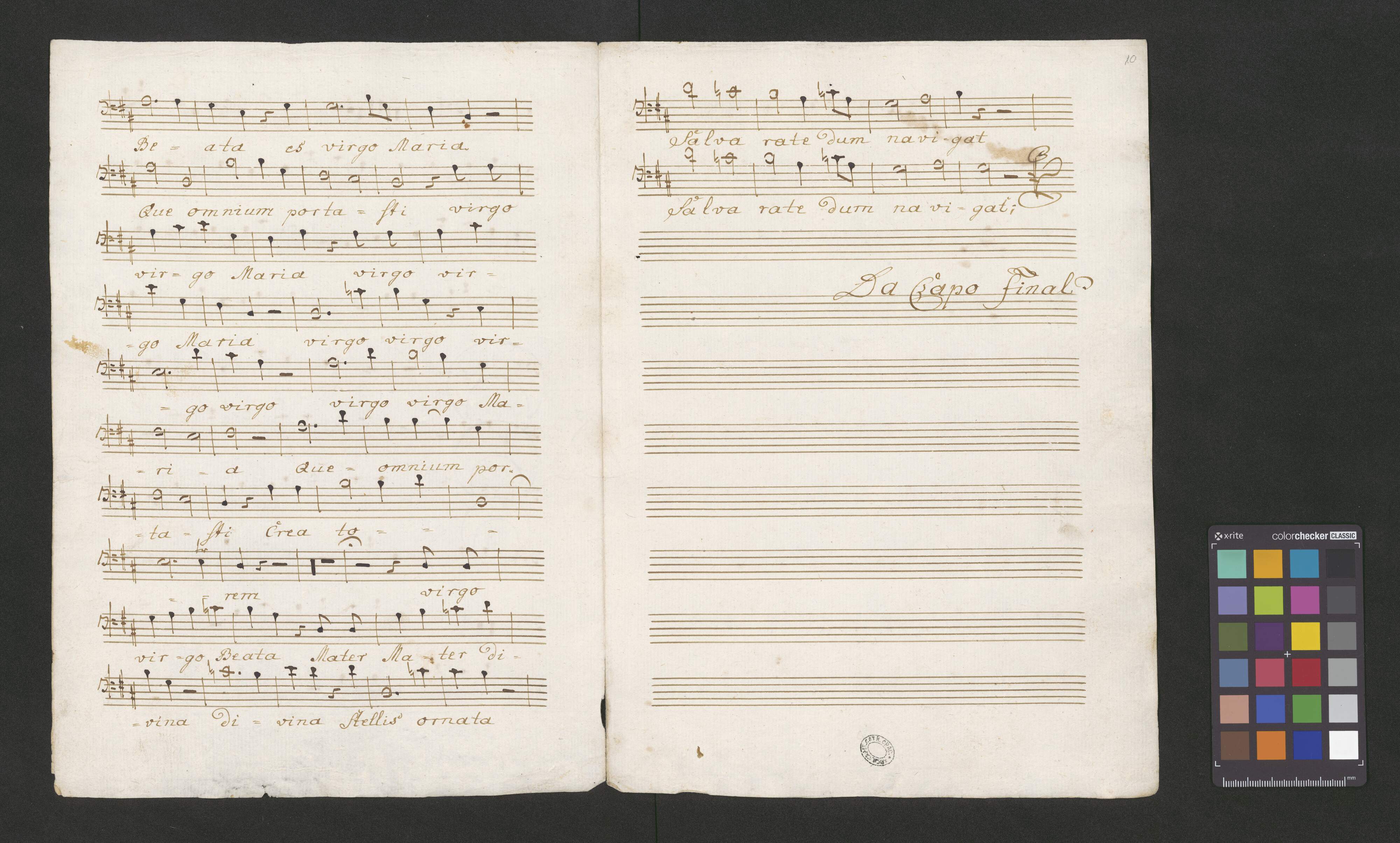 [inscription at the end of the org voice:] Motetto de Sancto et de Beata V. Maria | a 4 Voci C.A.T. Basso Concto 2 Violinis Viola Organo | del S|r|e| Paissmann
