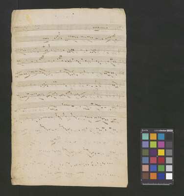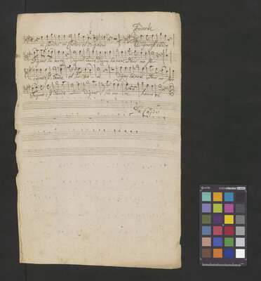 [pl-text: Głosy w źródle spisane przez przynajmniej dwóch kopistów.], [pl-text: W źródle brak partii vla i ob 1, 2 wymienionych na karcie tytułowej.], [pl-text: Dopisek na k. tytułowej oraz innych kartach (na przykład na f. 1v i 10 r) sporządzone inną ręką i innym atramentem niż głosy.], [pl-text: Foliacja w źródle naniesiona ołówkiem (bez karty tytułowej).], [pl-text: Na f. 10r kopista rozpoczął zapisywanie głosu org, jednak kopia nie została dokończona. Zapis nutowy skreślony innym rodzajem atramentu. Karta tytułowa oraz f. 10 tworzą okładkę dla pozostałych kart.], [pl-text: Pieczęć: „ARCHIWUM I BIBLIOTEKA”, „Krakowskiej Kapituły Katedralnej” z sygnaturą wpisaną ołówkiem na odwrocie k. tytułowej; Pieczęć: „CATH. CRAC. * ARCH. CAPIT.” (czarna) na każdym folio na stronie recto.]