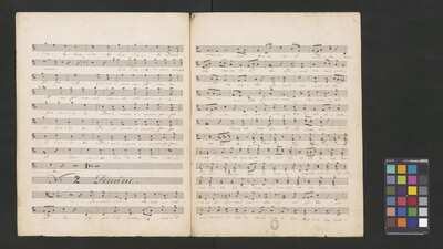 [pl-text: Karty obłożone okładką z mocniejszego papieru. Na okładce (karcie tytułowej) zapisany niebieskim długopisem numer "424" oraz umieszczona naklejka z nadrukiem "SP.K.3.".], [pl-text: Foliacja w źródle naniesiona ołówkiem.], [pl-text: Źródło zawiera partie spisane przez co najmniej trzech kopistów. Partytura prawdopodobnie starsza niż zapis poszczególnych głosów.], [pl-text: Źródło zawiera te same dwa utwory co kolekcja pod sygnaturą Kk.I.484 (RISM ID 1001141030).], [pl-text: Pieczęć: „CATH. CRAC. * ARCH. CAPIT.” (czarna) na f. 1-12r' Pieczęć: „ARCHIWUM I BIBLIOTEKA”, „Krakowskiej Kapituły Katedralnej” z sygnaturą wpisaną ołówkiem wewnątrz okładki (na odwrocie k. tytułowej).], [pl-text: W partiach poprawki naniesione ołówkiem.], [pl-text: W górnym brzegu f. 9r niewyraźny numer "N|r|o| 79" zapisany czerwonym ołówkiem.]