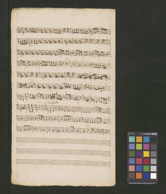 [pl-text: Karty obłożone okładką z mocniejszego papieru. Tytuł (k. tytułowa) na okładce spisana inną ręką niż głosy.], [pl-text: Foliacja w źródle naniesiona ołówkiem (z wyłączeniem karty tytułowej).], [pl-text: W źródle podwójne egzemplarze głosów vl 1, 2 oraz b, spisane przez tego samego kopistę co reszta partii głosowych.], [pl-text: Karty głosów ob 1,2 i cor 1, 2 przycięte.], [pl-text: Pieczęć: „ARCHIWUM I BIBLIOTEKA”, „Krakowskiej Kapituły Katedralnej” z wpisaną ołówkiem sygnaturą wewnątrz okładki; niebieska pieczęć: „CATH. CRAC. * ARCH. CAPIT.” wewnątrz okładki oraz na każdym folio na stronie recto.]