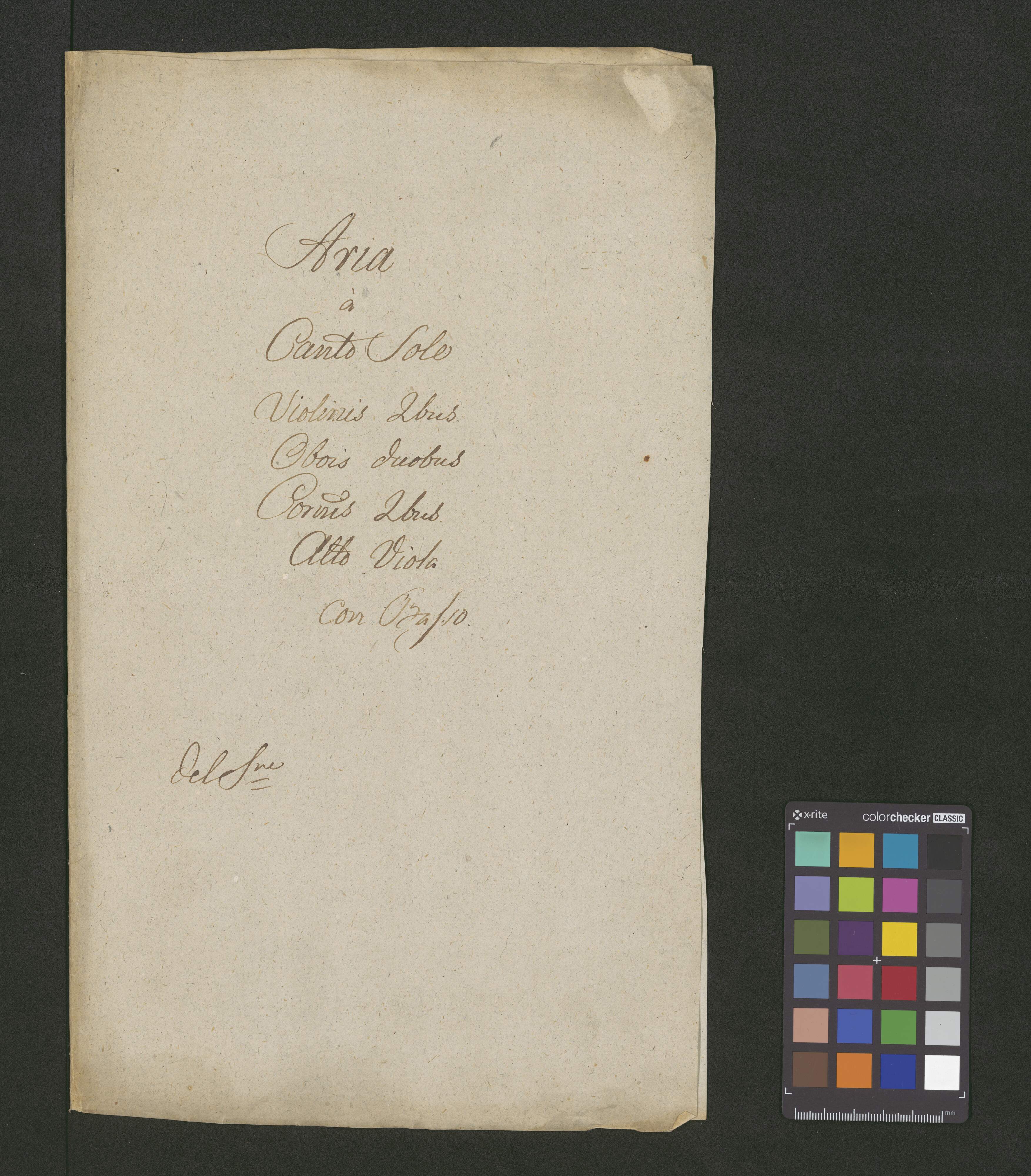 [cover page:] Aria | a | Canto Solo | Violinis 2bus. | Obois duobus | Cornis 2bus. | Alto Viola | con Basso. | del S|r|e|