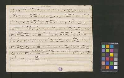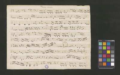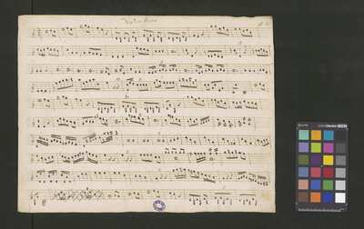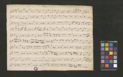 [pl-text: Partia vl solo spisana na f. 1 i 8 tworzy okładkę dla pozostałych głosów.], [pl-texT: Foliacja w źródle naniesiona ołówkiem.], [pl-text: U dołu f. 1r spisana ołówkiem sygnatura.], [pl-text: Partia vl solo spisana prawdopodobnie przez innego kopistę.], [pl-text: Pieczęć: „ARCHIWUM I BIBLIOTEKA”, „Krakowskiej Kapituły Katedralnej” na f. 8r; niebieska pieczęć: „CATH. CRAC. * ARCH. CAPIT.” na f. 1r, 2r, 3r, 4r, 5r, 6r, 7r.]