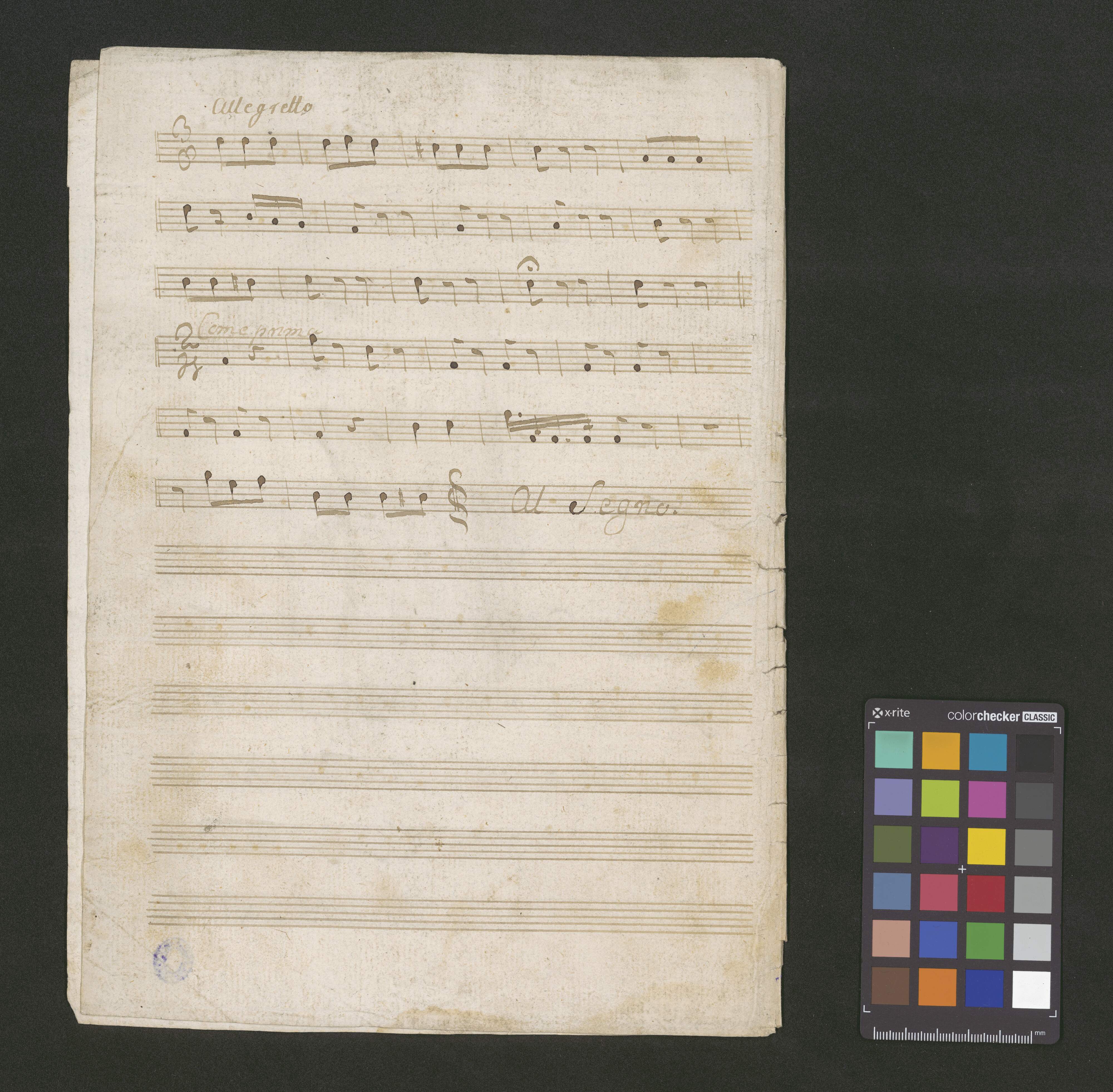 [caption title, org:] N-o 3 | Aria In A |Canto Solo | Violino Primo | Violino Secundo | Duo Oboe | Duo Corni | Violetta | con | Basso | Del Sig-re | Pasquale Anfosi | [in other ink:] Comparat nouver [?] A|o| 1796 dubs 9bris. Lochman C [unreadable] Crc Musica Prefectus