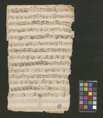 [pl-text: Karty obłożone okładką z mocniejszego papieru. Zapis tytułu na okładce wykonany przez innego kopistę niż głosy zawarte w źródle.], [pl-text: Foliacja w źródle naniesiona ołówkiem.], [pl-text: Folio 24, 25 prawdopodobnie straszne od reszty rękopisu, spisane inną ręką.], [pl-text: Tekst słowny wpisany pod zapisem nutowym pochodzi od więcej niż jednego kopisty.], [pl-text: Pieczęć: „CATH. CRAC. * ARCH. CAPIT.” (czerwona) na jednej z wewnętrznych stron okładki, f. 1-19r, 20v, 21r, 22r, 23v, 24r, 25r; niebieska na f. 1r, 3r, 5r, 7r, 9r, 11r, 13r, 15r, 17r, 18r, 19r, 20v, 21r, 22r, 23v, 24r, 25r; Pieczęć: „ARCHIWUM I BIBLIOTEKA”, „Krakowskiej Kapituły Katedralnej” z sygnaturą wpisaną ołówkiem na wewnętrznej stronie okładki (na odwrocie k. tytułowej).]