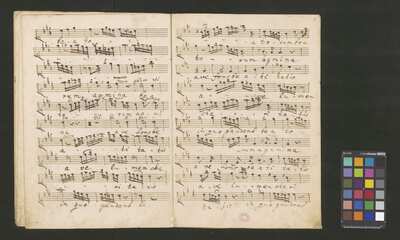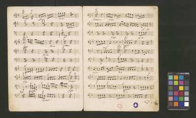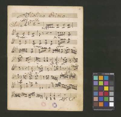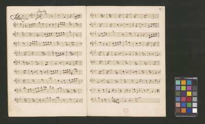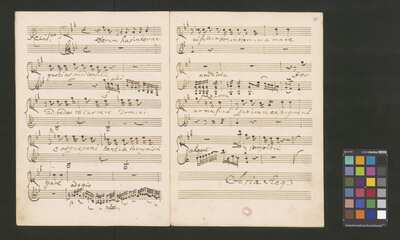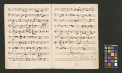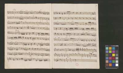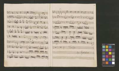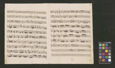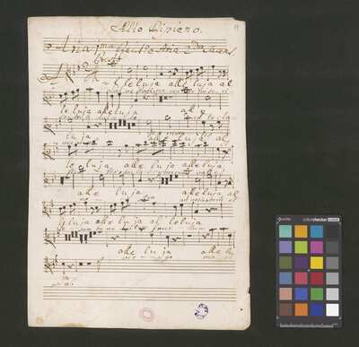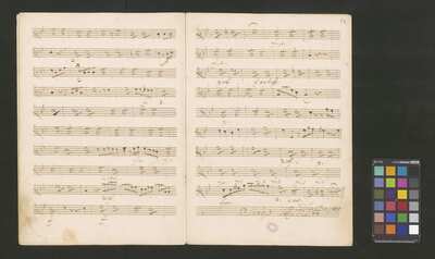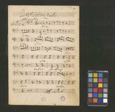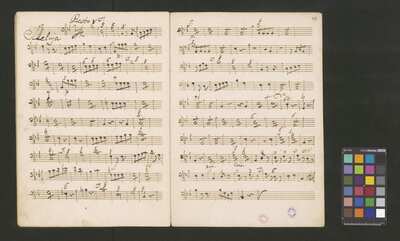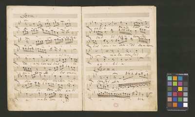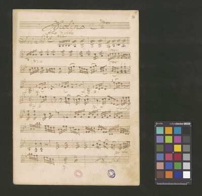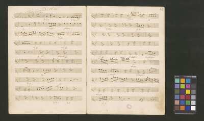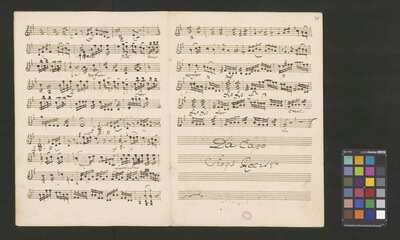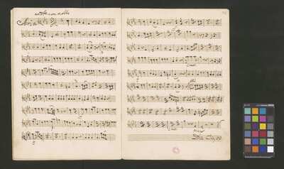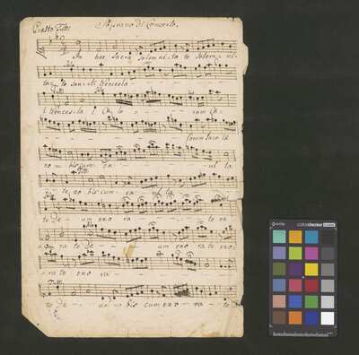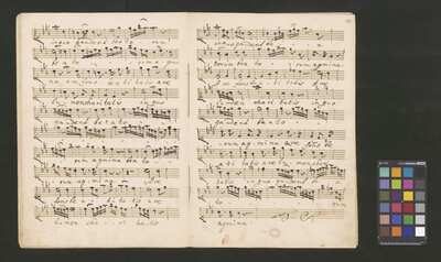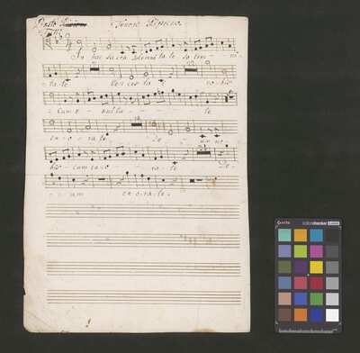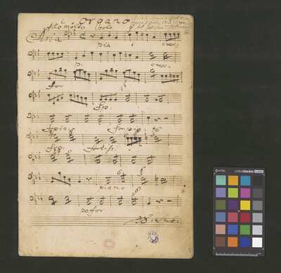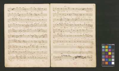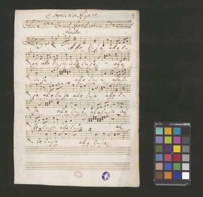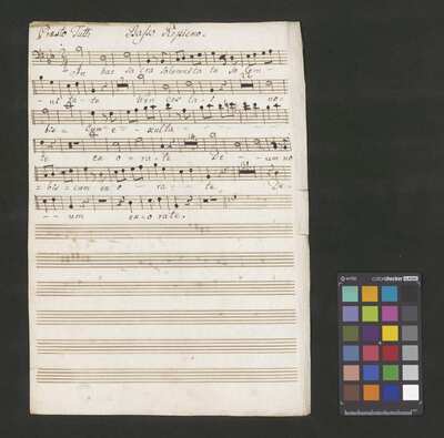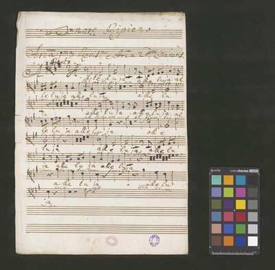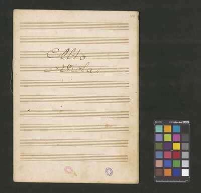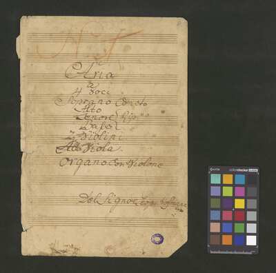 [pl-text: 2 arie, recytatyw oraz chór.], 2 arias, recitative and chorus., [pl-text: Karty obłożone okładką z innego rodzaju papieru. Zapis tytułu na okładce prawdopodobnie nie pochodzi od żadnego z kopistów źródła.], [pl-text: Źródło spisane przez kilku kopistów.], [pl-text: Foliacja w źródle naniesiona ołówkiem (z wliczeniem okładki).], [pl-text: W górnym brzegu okładki (k. tytułowej) nieczytelne (przycięte) zapiski sporządzone atramentem. Na f. 2r (prawdopodobna oryginalna k. tytułowa) w górnym brzegu karty czerwonym ołówkiem zapisany numer "N 1".], [pl-text: Zwielokrotnione egzemplarze partii wokalnych i instrumentalnych pochodzą od różnych kopistów.], [pl-text: W części "Presto,Tutti" w partiach woklanych zapisane trzy różne teksty słowne pod tym samym zapisem nutowym.], [pl-text: Na f. 9v w górnym marginesie karty zapiski naniesione atramentem, prawdopodobnie w języku niemieckim.], [pl-text: Pieczęć: „CATH. CRAC. * ARCH. CAPIT.” (czerwona) na f. 2-62r; niebieska na f. 2r, 3r, 4r, 10r, 16r, 17r, 18r, 19r, 20r, 26r, 32r, 38r, 44r, 50r, 56r, 57r; Pieczęć: „ARCHIWUM I BIBLIOTEKA”, „Krakowskiej Kapituły Katedralnej” z sygnaturą wpisaną ołówkiem na f. 1v.]