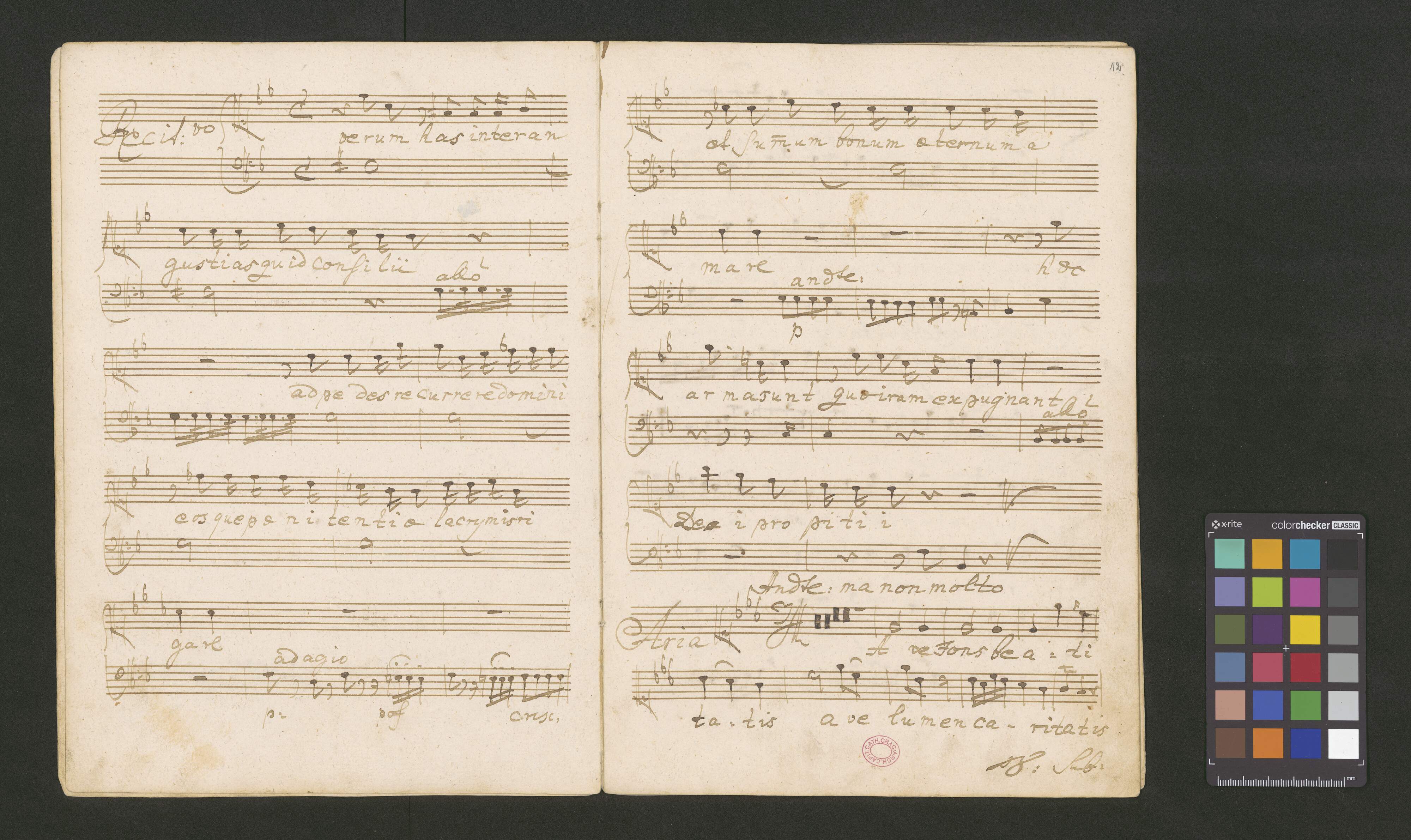 [cover page:] N|o| 1. | Aria | a 4. Voci | Soprano Concto. | Alto | Tenore | Basso } Rpno. | 2 Violini | Alto Viola | Organo cum Violone | del S|r| Leop. Hofmann | Pro Usu Eccle Cathls Cracov