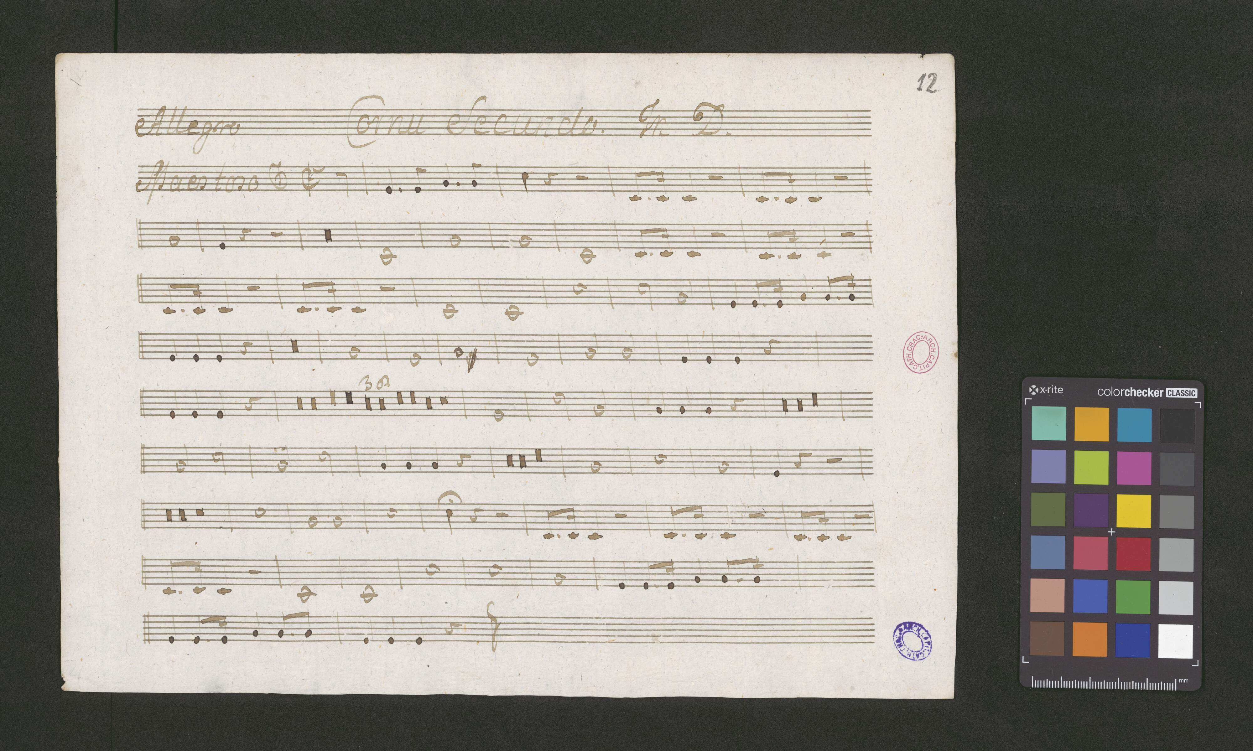 N|o 2. | Aria Basso In D. | Violino Primo | Violino Secundo | Oboe Primo | Oboe Secundo | Cornu Primo | Cornu Secundo | Alto Viola | è Basso | Dal Sigl: Moller. | [ręką Karola Lochmana:] Comparata noviter a[nn]o 1796 dieb[us] 9bris. CLochman C[anoni]c[us] et A[rchi]pr[esb]it[er] Crac[oviensis] Musicae Prefectus