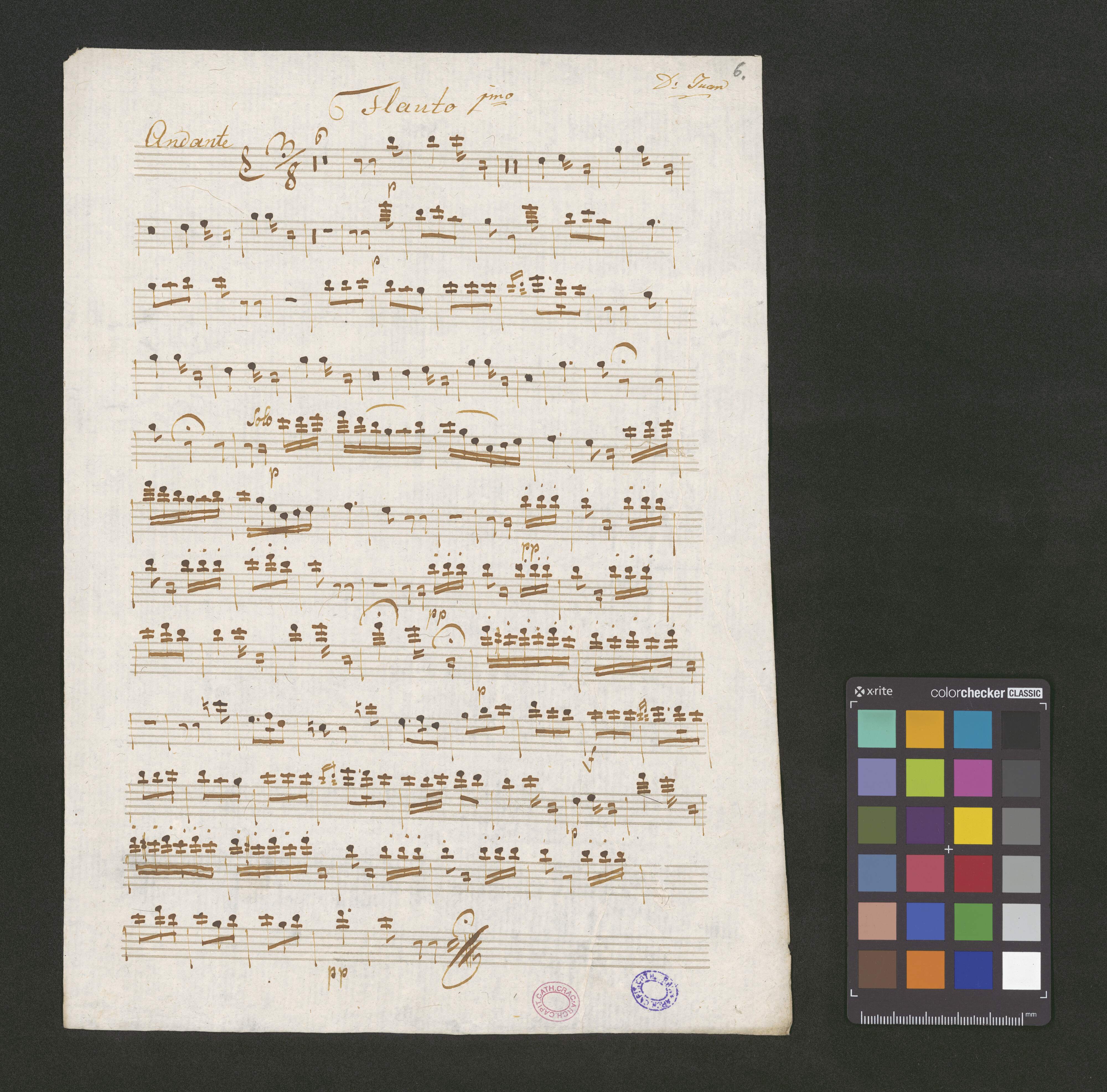 Aria | (?) | Don Juan! | Violini Due | Violae Due | Flauti Due | Clarinetti Due | Fagotti Due | Corni Due | Violonzello | et | Basso! | Dell Sigl: W: A: M[ozart]