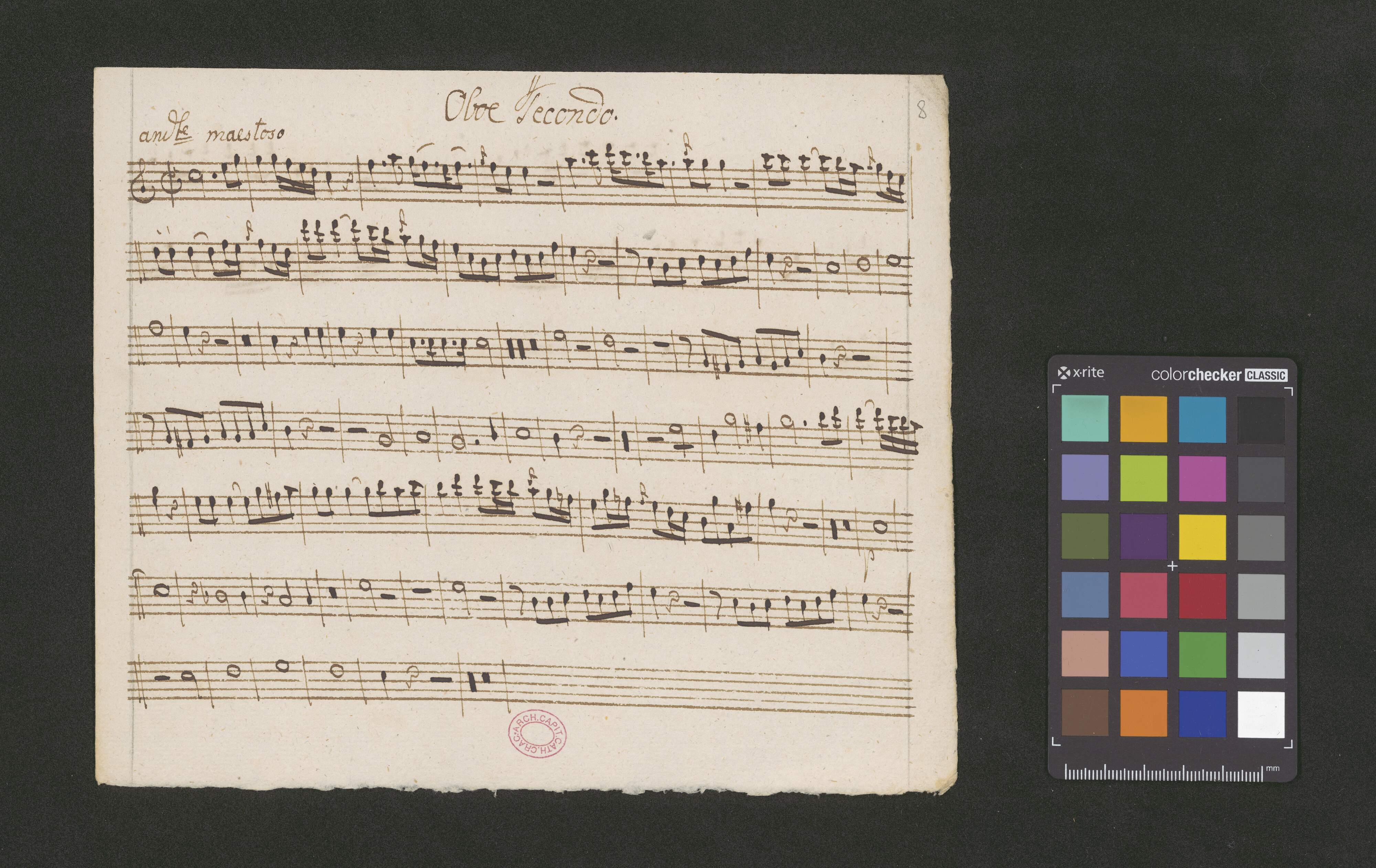 Aria in C♮ Piccini | a | Tenore Solo. | Violinis 2bus duplicatij | Obois 2bus | Cornibus 2bus | Alto Viola | con | Basso duplicati | Procur Ecclesie Cathedralis Cracoviensis