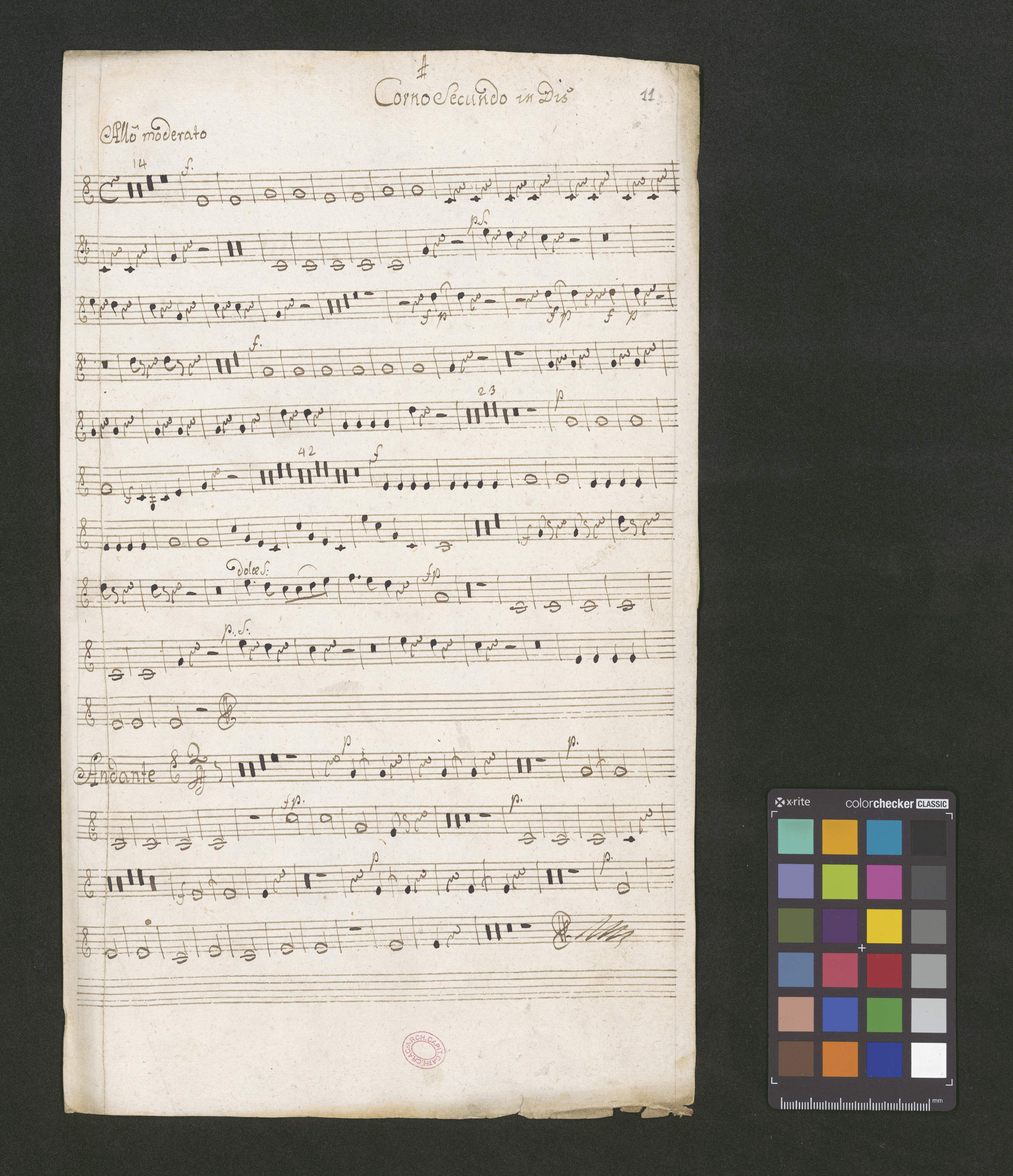 Aria 3tia in D | a | Canto Solo. | Violino Primo | Violino Secundo | Cornu Primo | Cornu Secundo | Viola di Alto | et | Basso | Del Sigl: Pohl